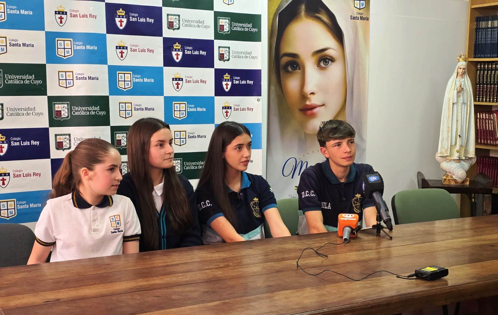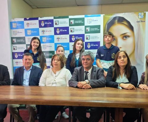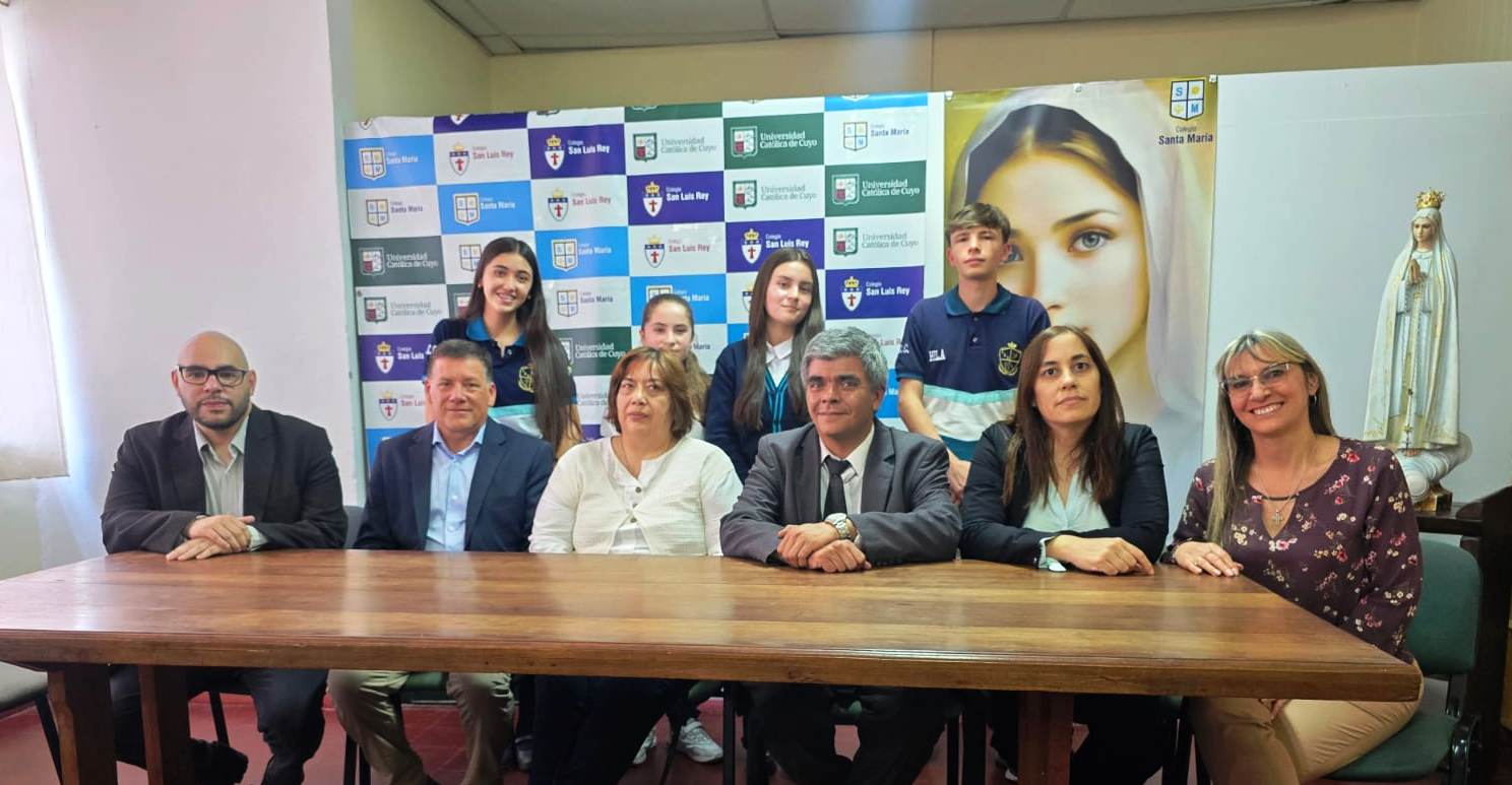 Estuvieron presentes en la rueda de prensa: en representación del ministerio de Turismo y Cultura, Nahuel Sienra; el rector del nivel Secundario del Colegio Santa María, Miguel Pedernera; el profesor Cesar Romero, directivos, docentes y alumnos.