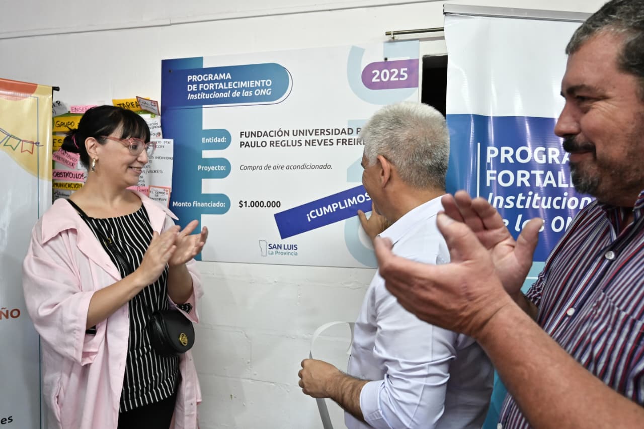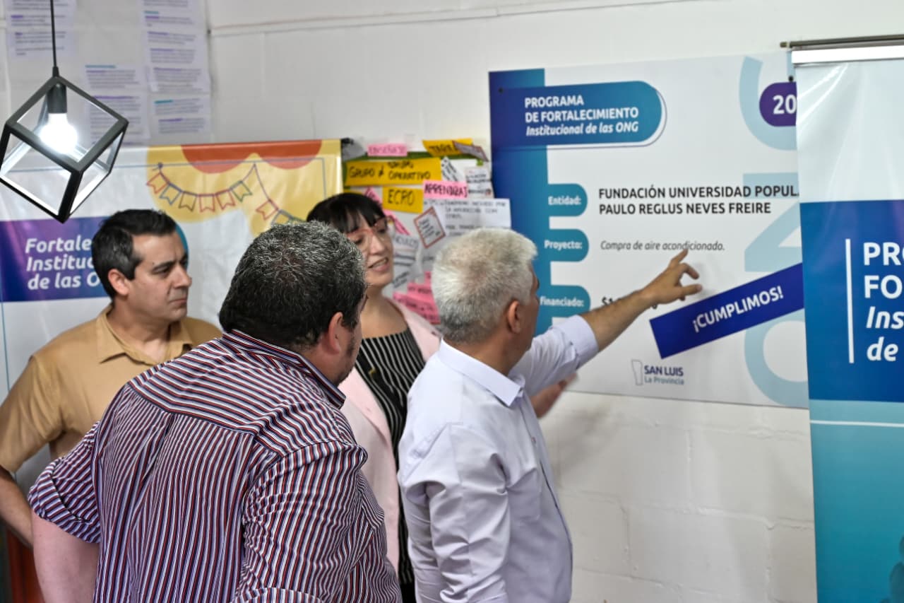 Este miércoles, el gobernador Claudio Poggi visitó la Fundación Universidad Popular ‘Paulo Reglus Freire’ de Potrero de los Funes por un motivo muy especial: colocar la cinta de ‘Cumplimos’, la cual evidencia la concreción del proyecto que habían presentado para crecer institucionalmente.