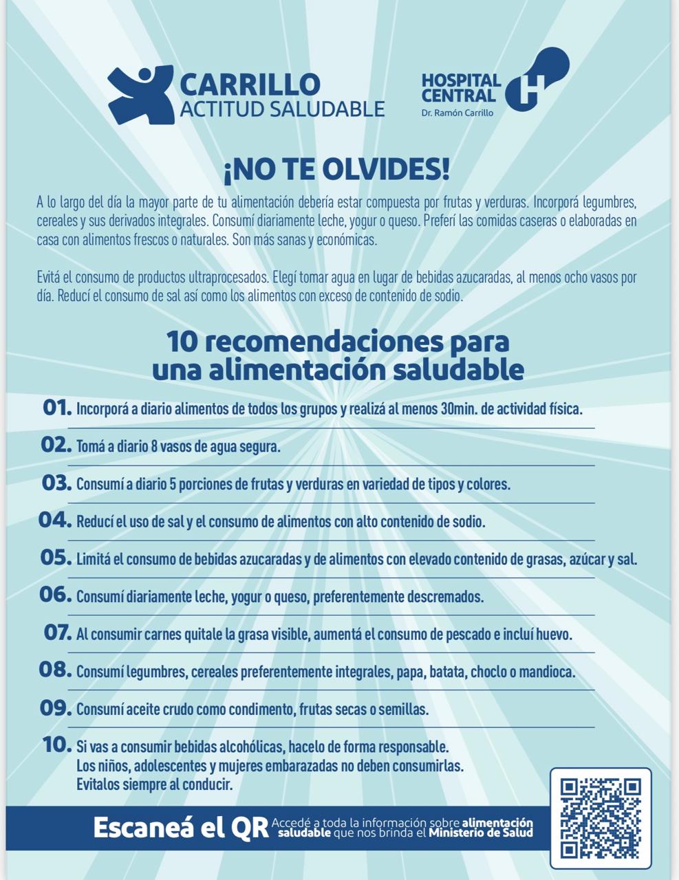 Esta actividad se enmarca en el trabajo permanente que realiza el servicio de Nutrición del Hospital Carrillo, orientado no solo a la atención de pacientes internados, sino también a la promoción de hábitos saludables en toda la comunidad, contribuyendo así a la prevención de enfermedades relacionadas con la alimentación.
