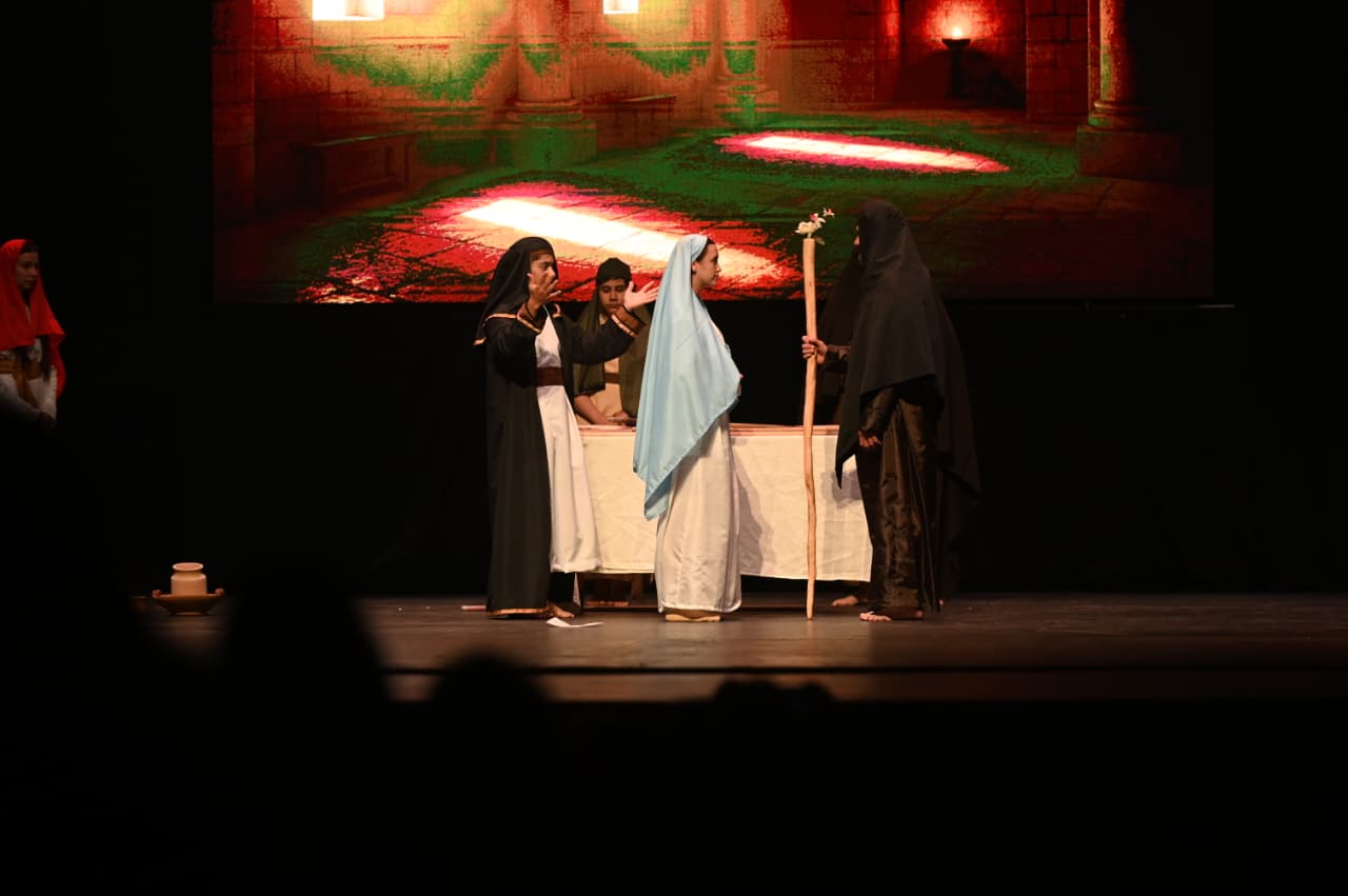 La comunidad del Colegio Santa María, con el apoyo de la secretaría de Comunicación y del ministerio de Turismo y Cultura, llevó a escena una pieza teatral con 20 canciones originales que narraron la vida de la Virgen María.