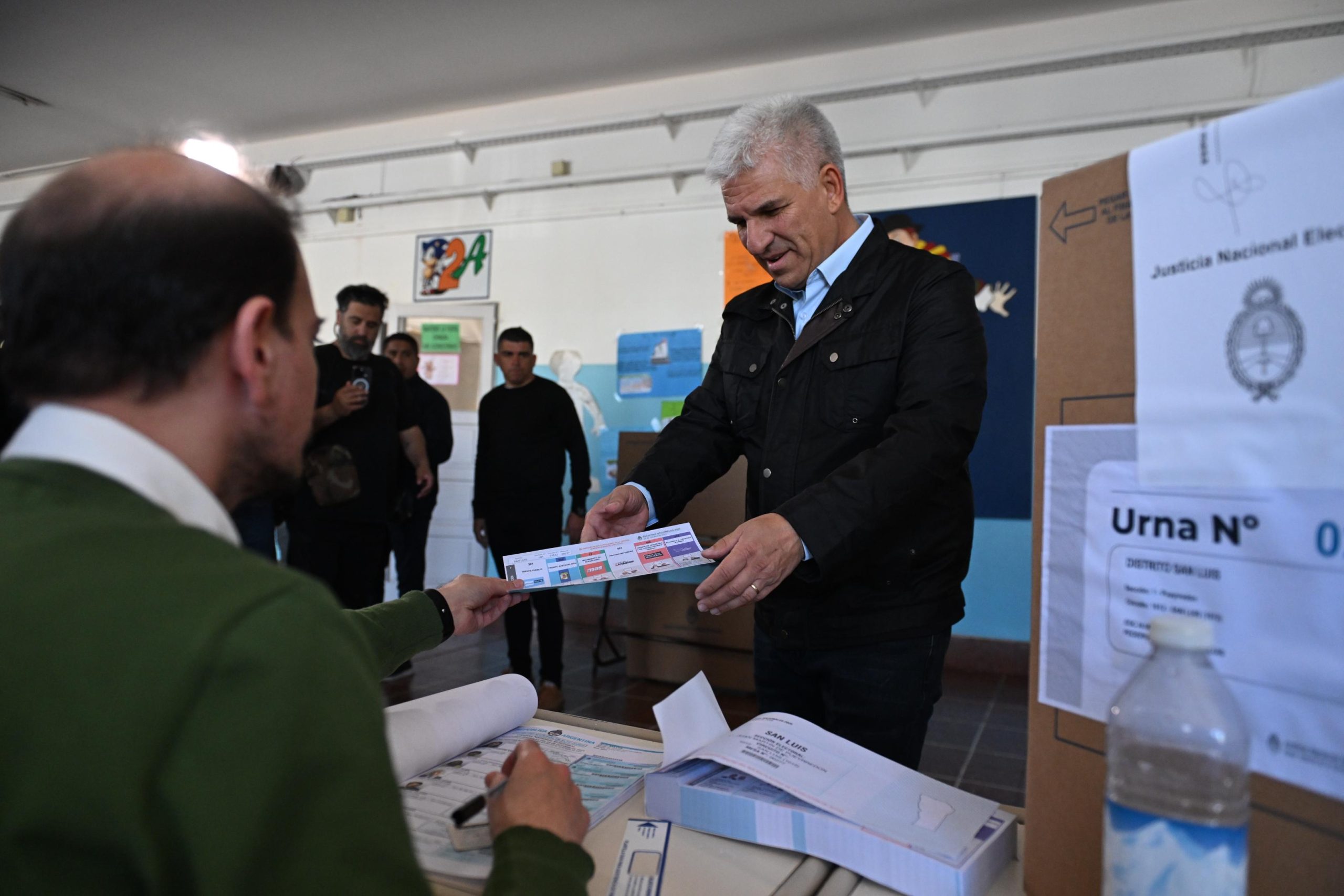 Pasadas las 11:00 de este domingo 26 de octubre, el gobernador, Claudio Poggi depositó su voto en la urna de la mesa 277 de la Escuela Normal Mixta.