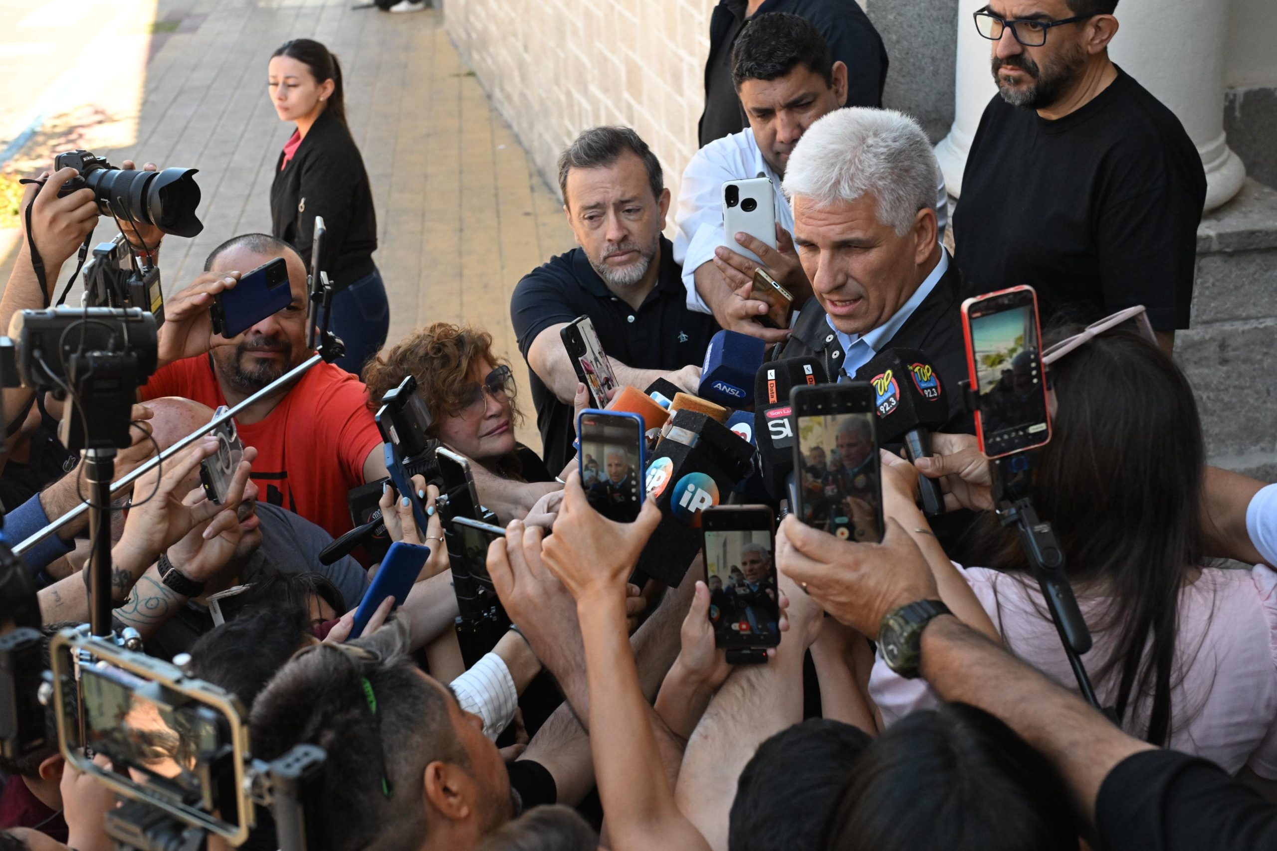 Alrededor suyo, la prensa esperaba ansiosa para escuchar sus declaraciones, que se brindaron en rueda de prensa, como en cada elección en las escaleras de la institución educativa ubicada en las calles Pedernera y Mitre de la ciudad de San Luis.