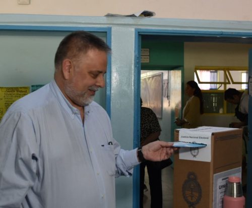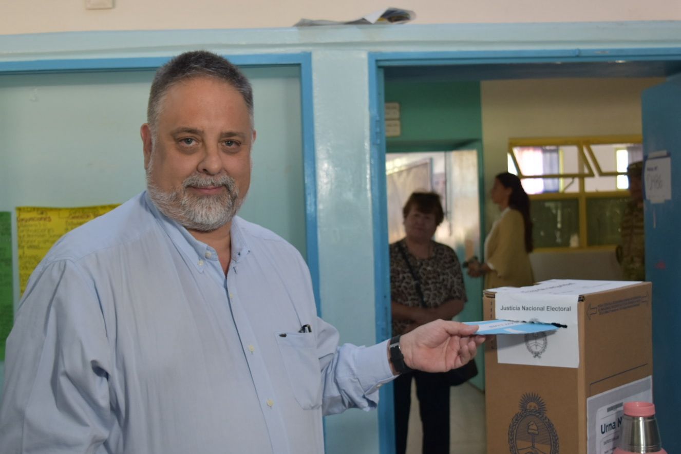 Fue en la mesa 486 de la Escuela N°13 ‘Profesor Roberto Moyano’. A la espera de cumplir con su derecho democrático, Endeiza conversó con los vecinos que se acercaron a emitir sus propios votos y atendió a la prensa.