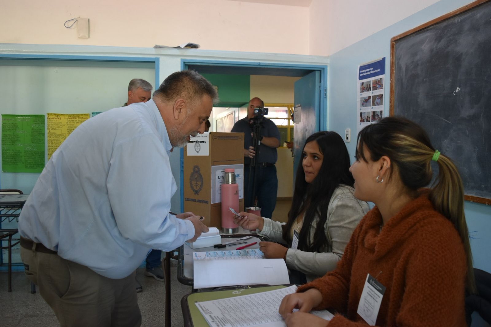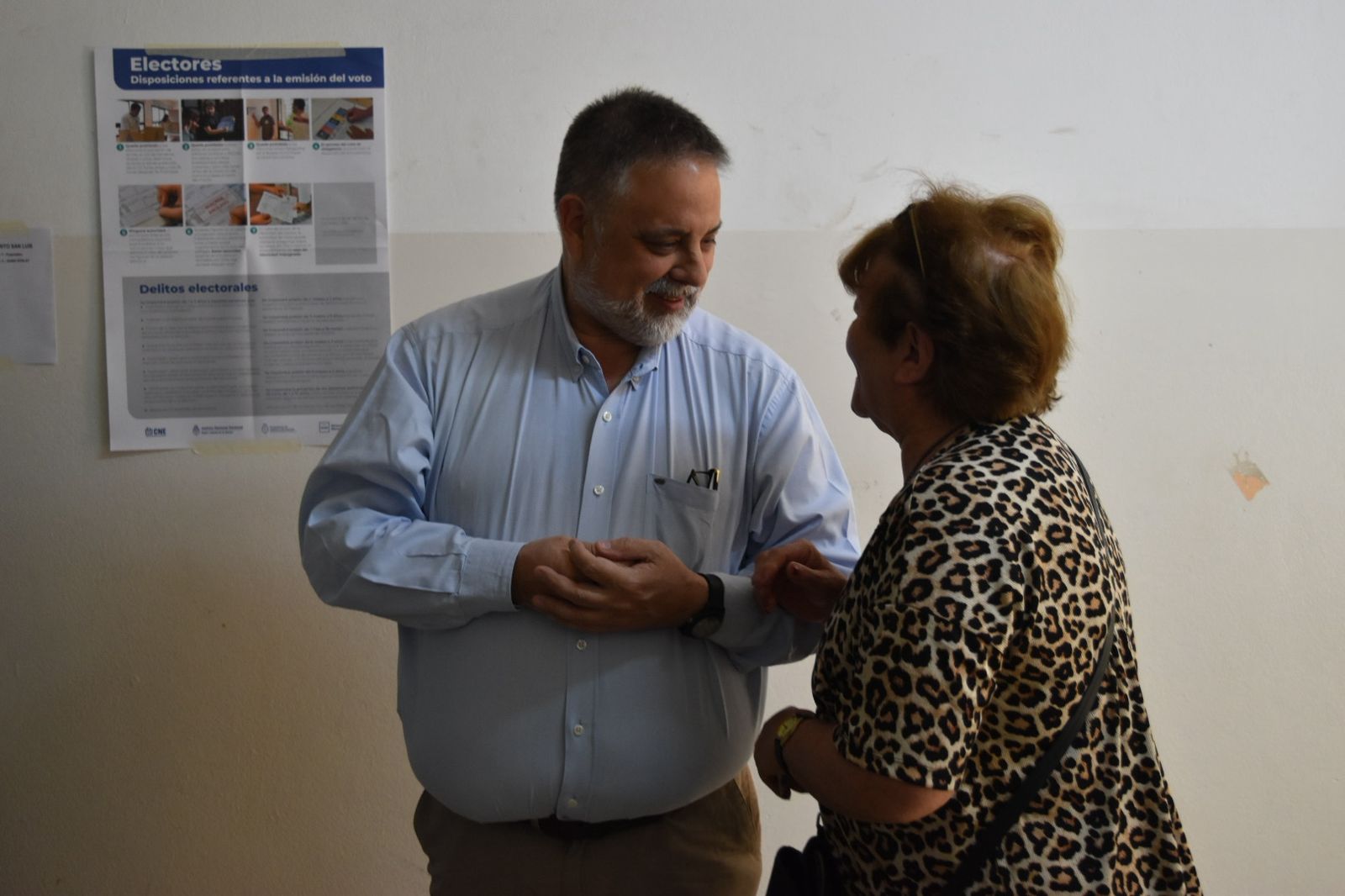 Mientras aguardaba para emitir su voto en la mesa 486, Endeiza saludó a los vecinos que hacían fila para sufragar y al personal que colabora en el desarrollo de la jornada electoral.