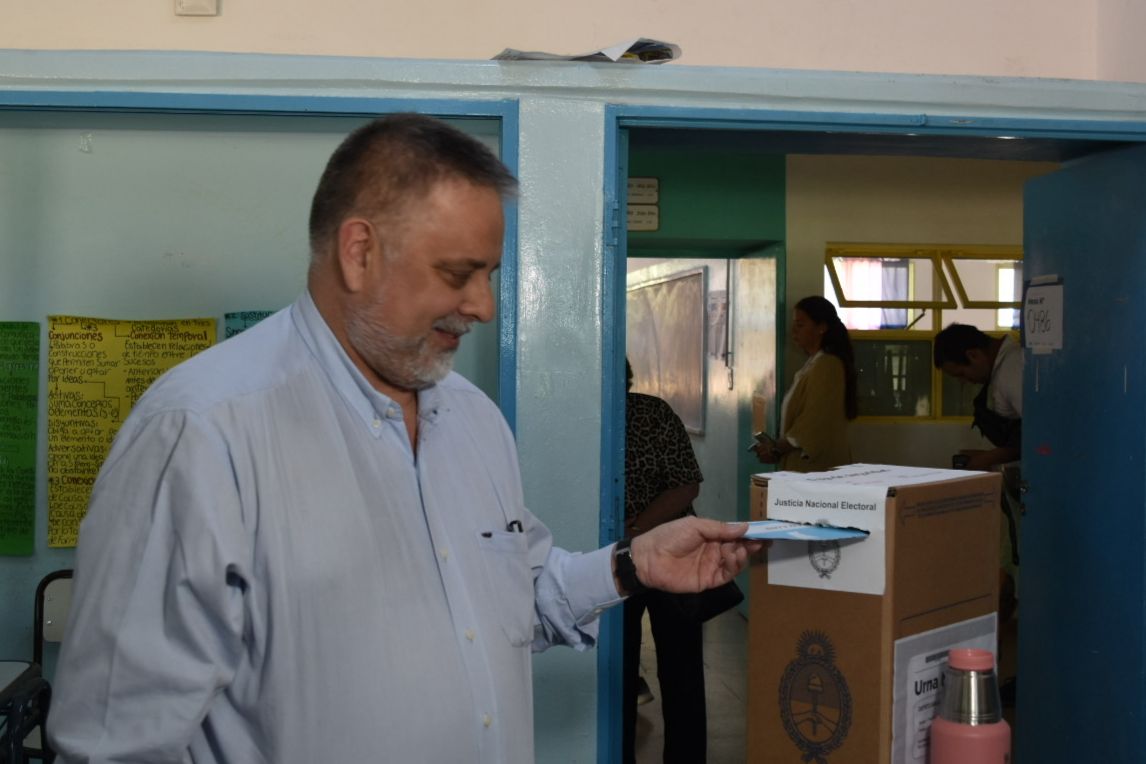 Fue en la mesa 486 de la Escuela N°13 ‘Profesor Roberto Moyano’. A la espera de cumplir con su derecho democrático, Endeiza conversó con los vecinos que se acercaron a emitir sus propios votos y atendió a la prensa.