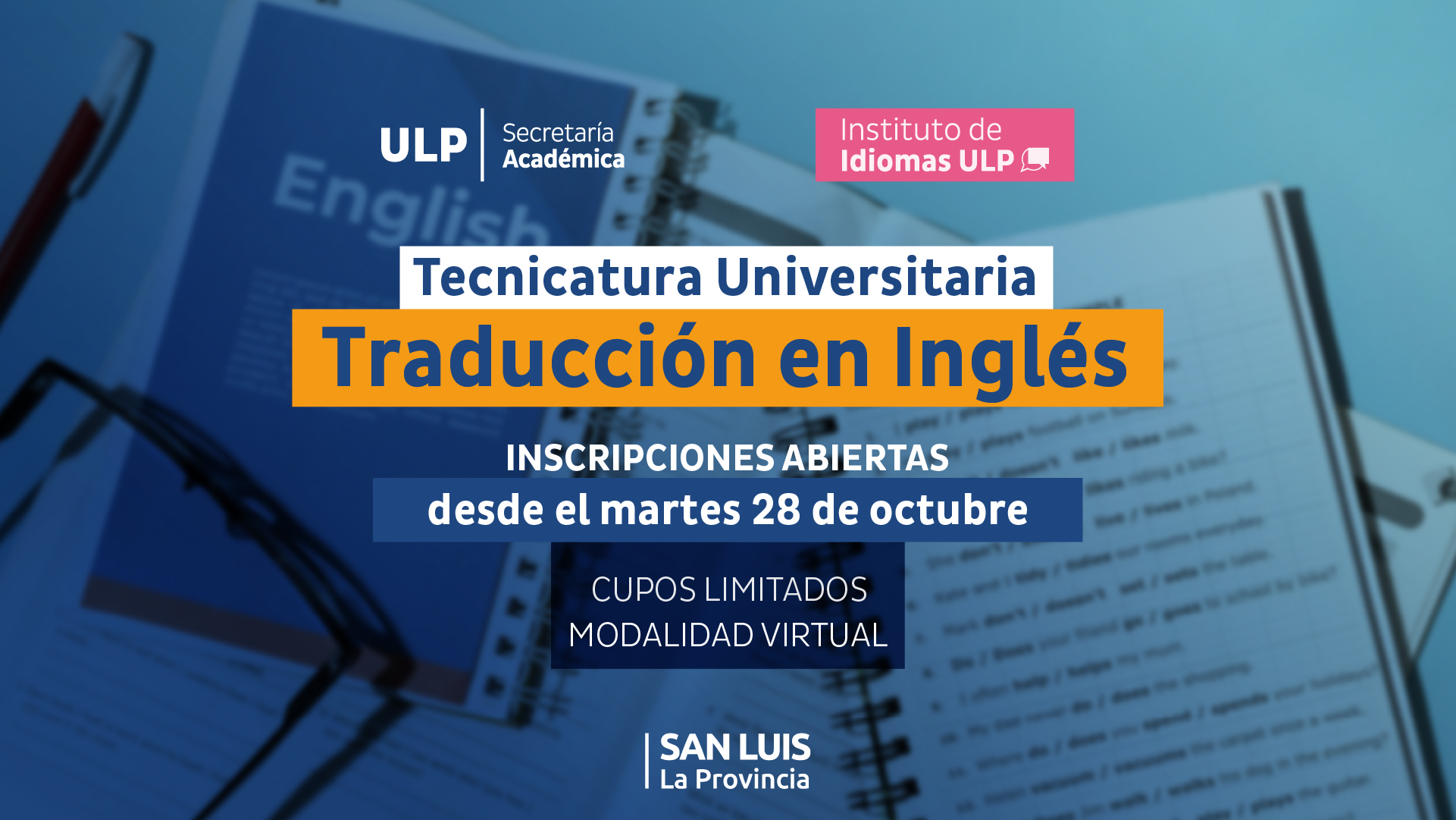 El Instituto de Idiomas (IDI) de la Universidad de La Punta agrega a su grilla de formaciones la Tecnicatura Universitaria en Traducción en Idioma Inglés, una nueva carrera que se dictará de forma virtual, con duración de tres años, y que busca formar profesionales capaces de insertarse en el mercado laboral global. La propuesta representa una apuesta clave de la Universidad para ampliar la oferta académica y brindar más oportunidades de formación superior en la provincia de San Luis.