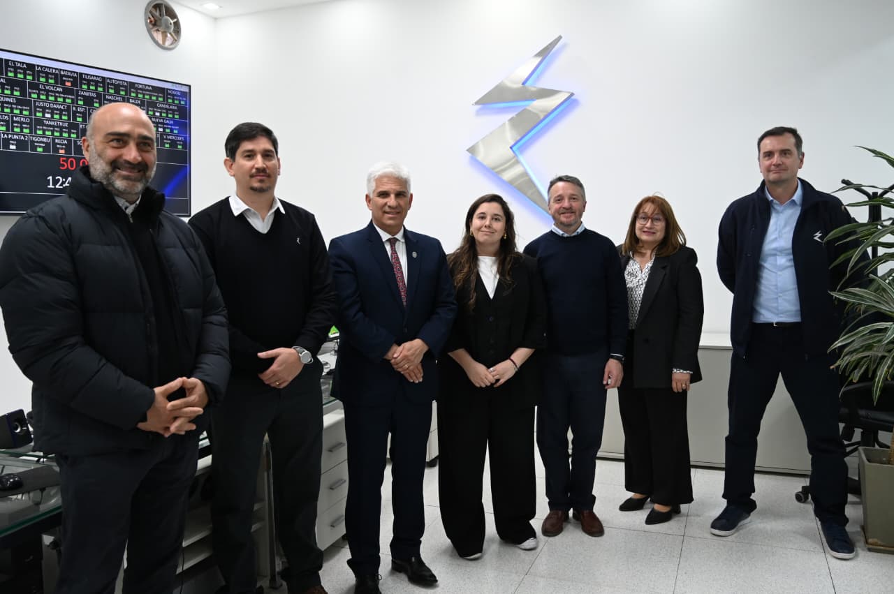 Dada las condiciones climáticas, no se pudo realizar un recorrido por la planta, tal como estaba previsto, por lo que directamente ingresaron a una sala de reuniones. Y, unos minutos después, el grupo se dirigió a una sala colindante, en donde funciona el Centro de Maniobras y Distribución. Allí, personal de la empresa le explicó a Poggi cuál es la tarea que se realiza allí. Luego se tomaron una foto grupal.