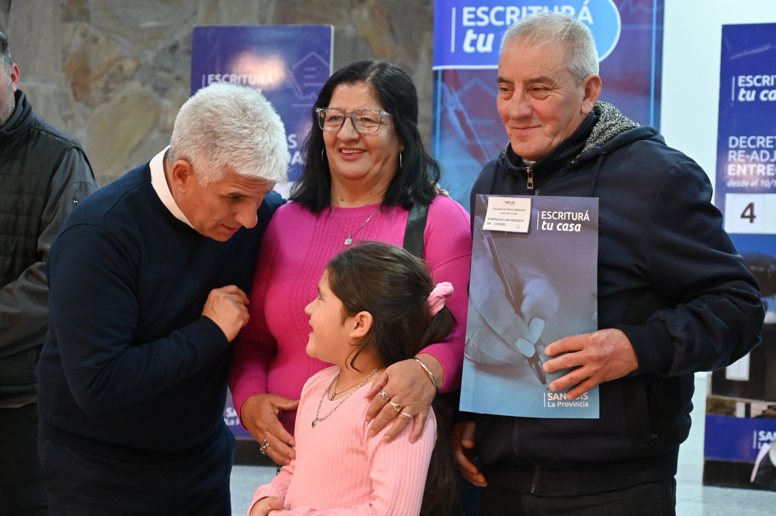 El gobernador Claudio Poggi entregó 107 escrituras y 13 decretos de regularización del programa ‘Escriturá tu Casa’ y 8 actas de afectación de ‘Protegé tu Casa’.