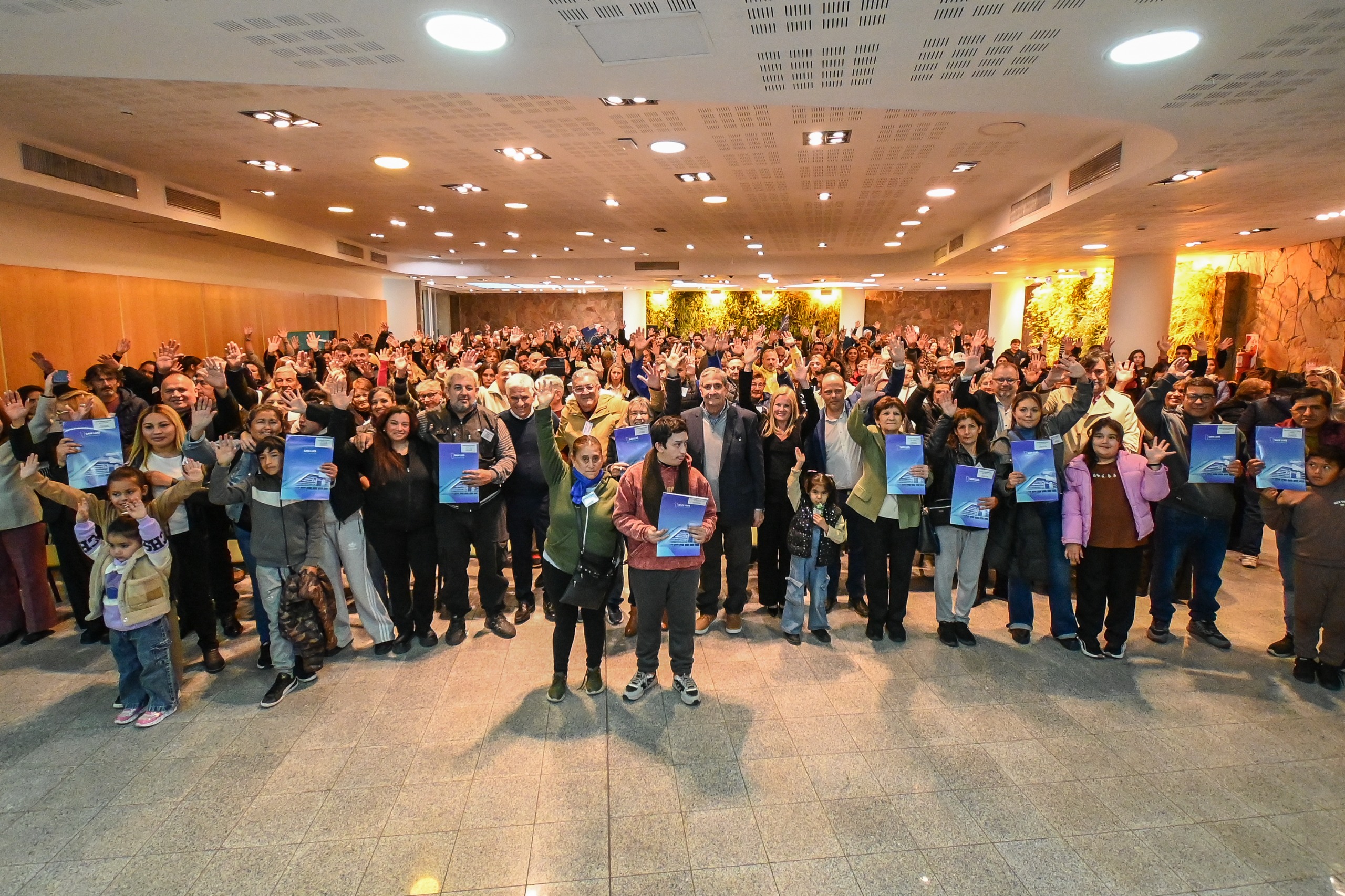 Además, subrayó que contar con la escritura no solo otorga valor legal y económico a la vivienda, sino también estabilidad y respaldo ante cualquier trámite o necesidad. “La escritura da tranquilidad familiar. Ustedes dejan de ser adjudicatarios y pasan a ser propietarios, con plena seguridad jurídica. Si algún día quieren vender, ser garantes o sacar un crédito, lo primero que les van a pedir es la escritura”, afirmó. Además, mencionó la entrega de decretos de readjudicación a familias que habían adquirido sus casas de buena fe y no figuraban como titulares originales, permitiéndoles ahora avanzar con la regularización dominial. “Entraron por esa puerta como adjudicatarios y se van como propietarios”, concluyó.