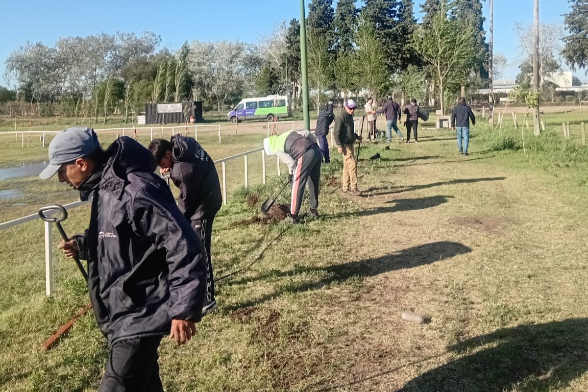 Comenzaron las plantaciones de árboles en instituciones deportivas