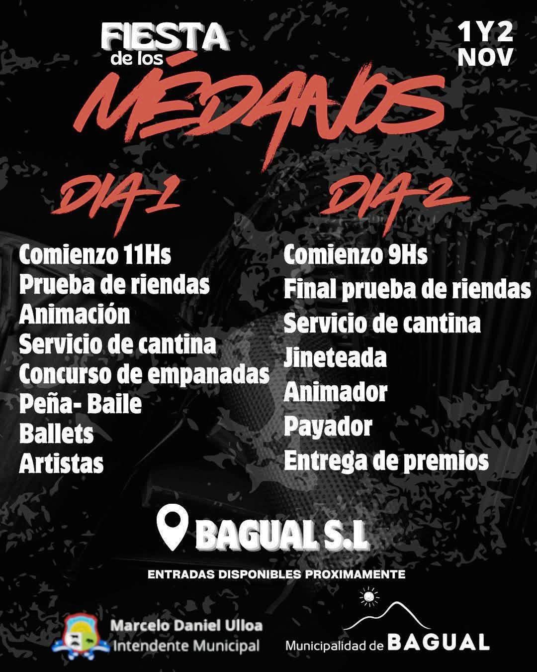 Durante el sábado 1° de Noviembre, las actividades comenzarán a las 11:00 con prueba de riendas, concurso de empanadas, peña baile, servicio de cantina y la presentación de ballets y artistas.