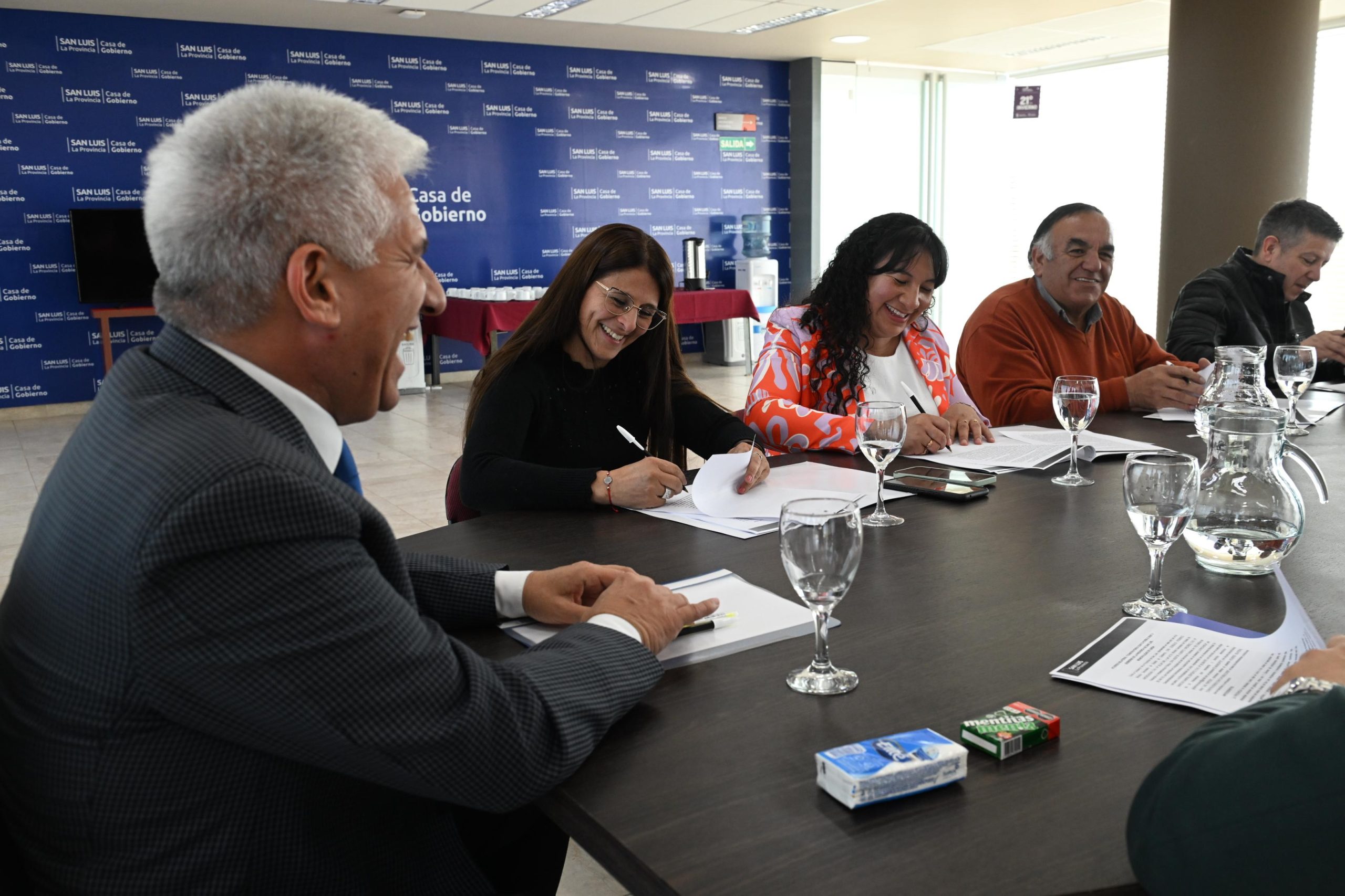 Además del Primer Mandatario y el jefe de la cartera de Gobierno, Gonzalo Amondaraín, participaron del encuentro los intendentes de El Trapiche, Ricardo Olivera Aguirre; Juan Llerena, Micaela Busto; La Carolina, Jorge Villegas; Leandro Alem, Jorge Cabello; Los Manantiales, Carolina Salinas; San Gerónimo, Norma Velázquez; Unión, Marcos Espósito; Villa de la Quebrada, Rosa Calderón, y San Francisco del Monte de Oro, Sandro Flores.