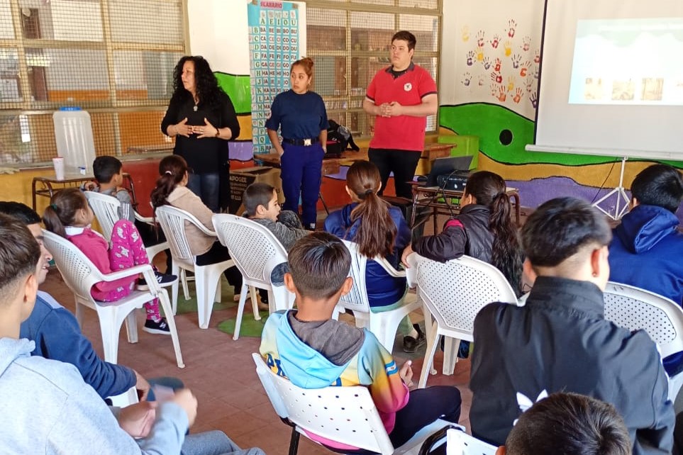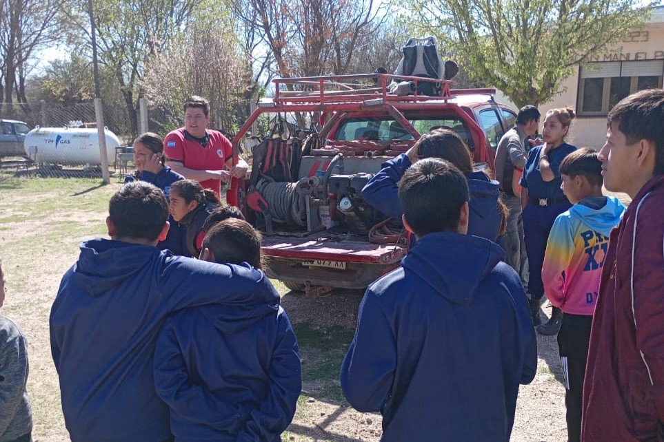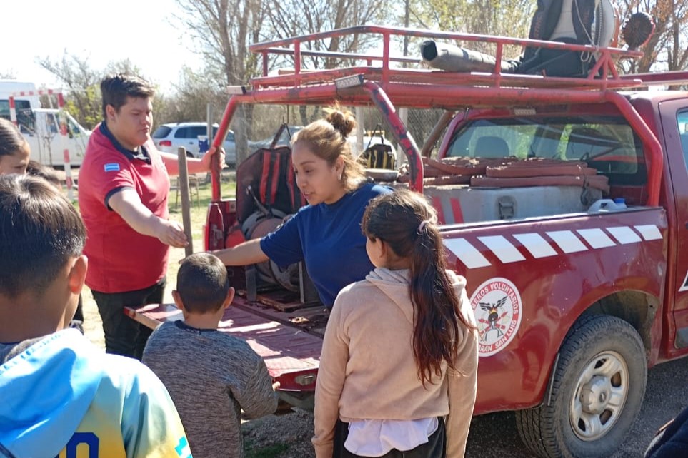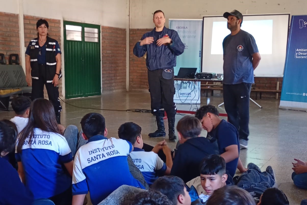 La Escuela Ambiental Itinerante y los Bomberos Voluntarios locales mantuvieron dos encuentros en el Instituto Santa Rosa del Conlara y la Escuela Nº223 ‘Granadero Juan Manuel Pringles’ de Los Lobos, en Concarán, para la prevención y combate de focos ígneos.
