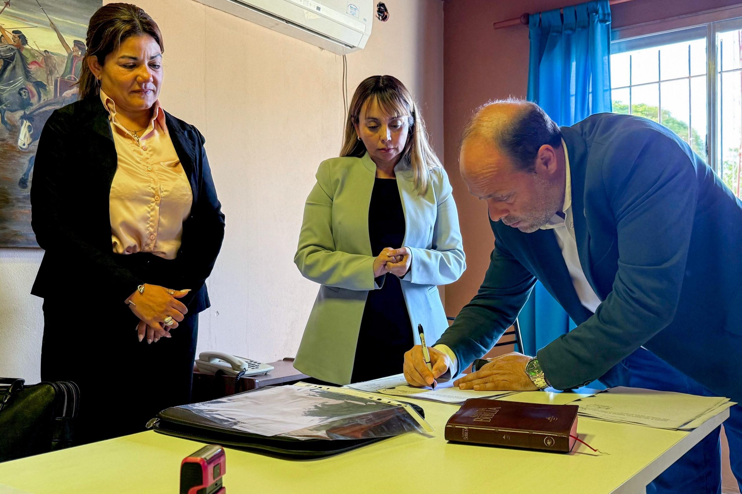 La jueza de paz, con competencia territorial en Fortín El Patria, doctora Dalia Rivero, leyó el acta de puesta en función; y además participaron el asesor legal ministerial, Valentín Laborda Claverie; de la dirección de Asuntos Municipales, Natalia Moreno y la secretaria de Gobierno de Fortín, Daniela Morichetti; familiares y vecinos.