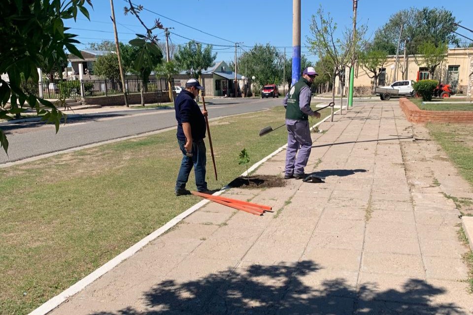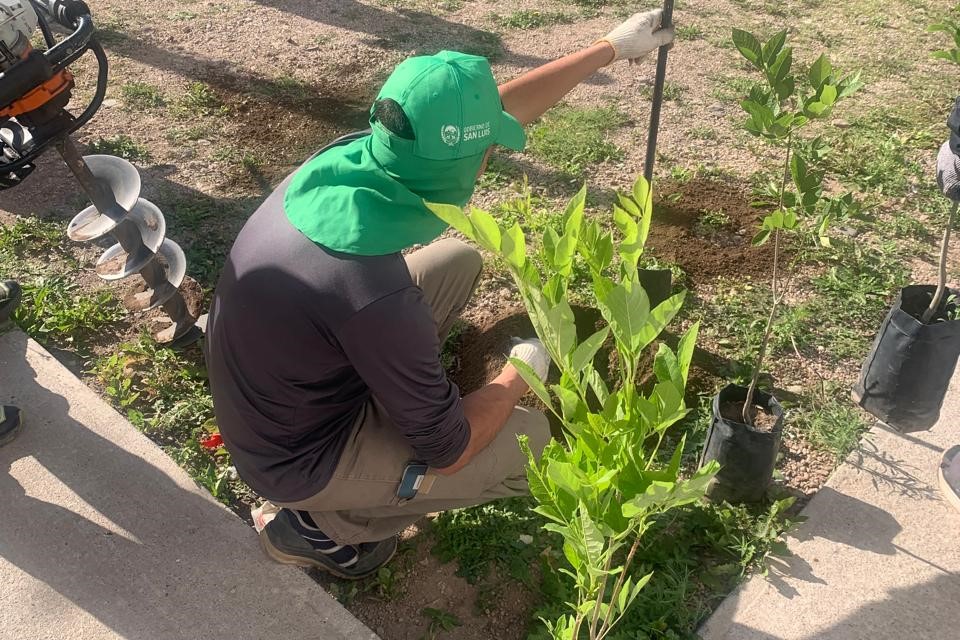 El equipo de Arbolado de Espacios Públicos avanzó en una plantación para la Universidad Provincial de Oficios (sede Centenario) de la ciudad de San Luis y otra para la municipalidad de Paso Grande.
