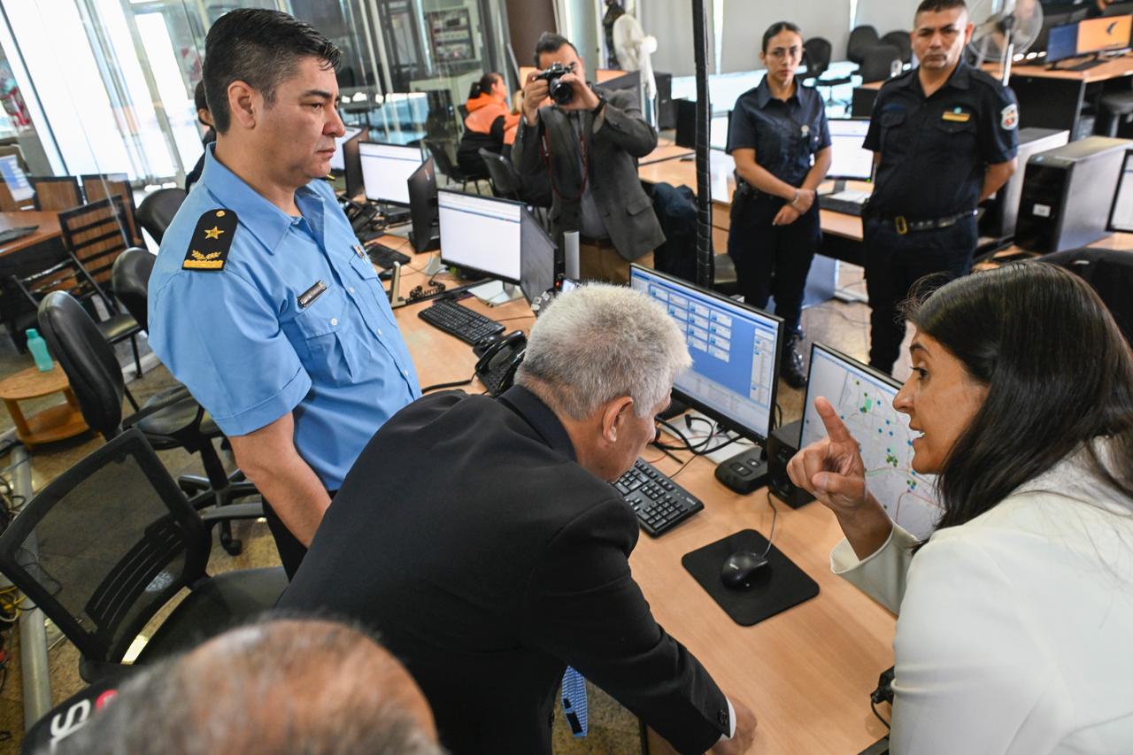 La ministro de Seguridad, Nancy Sosa, y el director de Tecnología, Javier Salomón, intercambiaron los pormenores del software con el Jefe de Estado. Los funcionarios le comentaron que cada equipo de radio tiene un chip, grabado de fábrica, que impide la intercepción de las comunicaciones policiales. “Eso es muy importante porque, al momento, tenemos muchas vulnerabilidades en el sistema de comunicación”, acotaron.