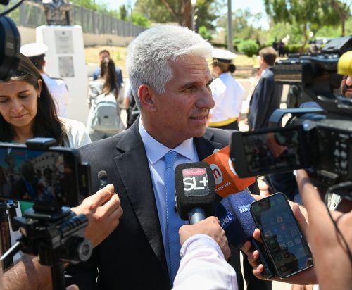 “Mi presencia aquí, por segundo año consecutivo, y en mi otra gestión todos los años, cada 31 de octubre, es una muestra de respeto a la institución y de respaldo a su personal, a los agentes de seguridad, en el marco de la ley y la Constitución, brindando todo el respaldo del Gobierno de la Provincia”, dijo el gobernador Claudio Poggi ante la prensa luego de encabezar el acto por el 167° aniversario de la Policía de San Luis.