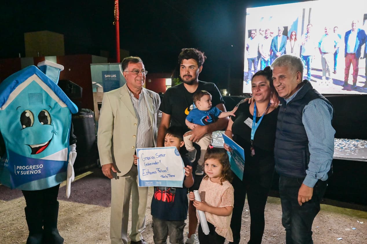 Este viernes, el gobernador Claudio Poggi arribó a Santa Rosa del Conlara para cumplir la palabra empeñada. Finalmente, las 25 familias que se inscribieron a los planes ‘Progreso’ y ‘Sueños’ recibieron las llaves de sus viviendas.