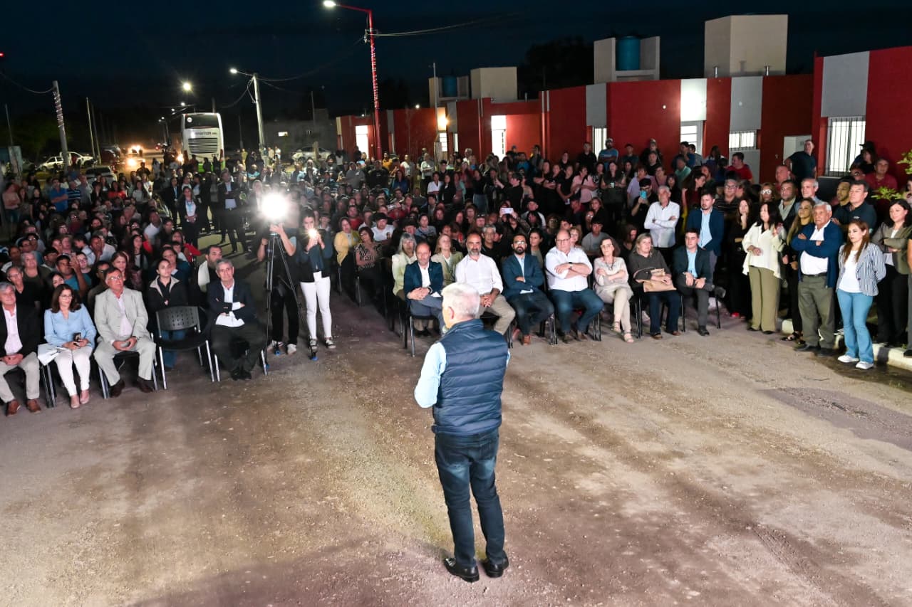 “Estamos cumpliendo la palabra empeñada. Miremos para adelante. Hoy están estas casas en este hermoso barrio”, dijo.