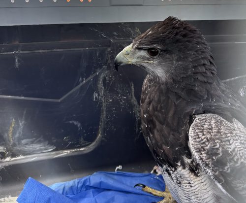 El ave rapaz, que arribó desde la Villa de Merlo, se encuentra en buen estado, con una lesión en el ala y recuperándose.