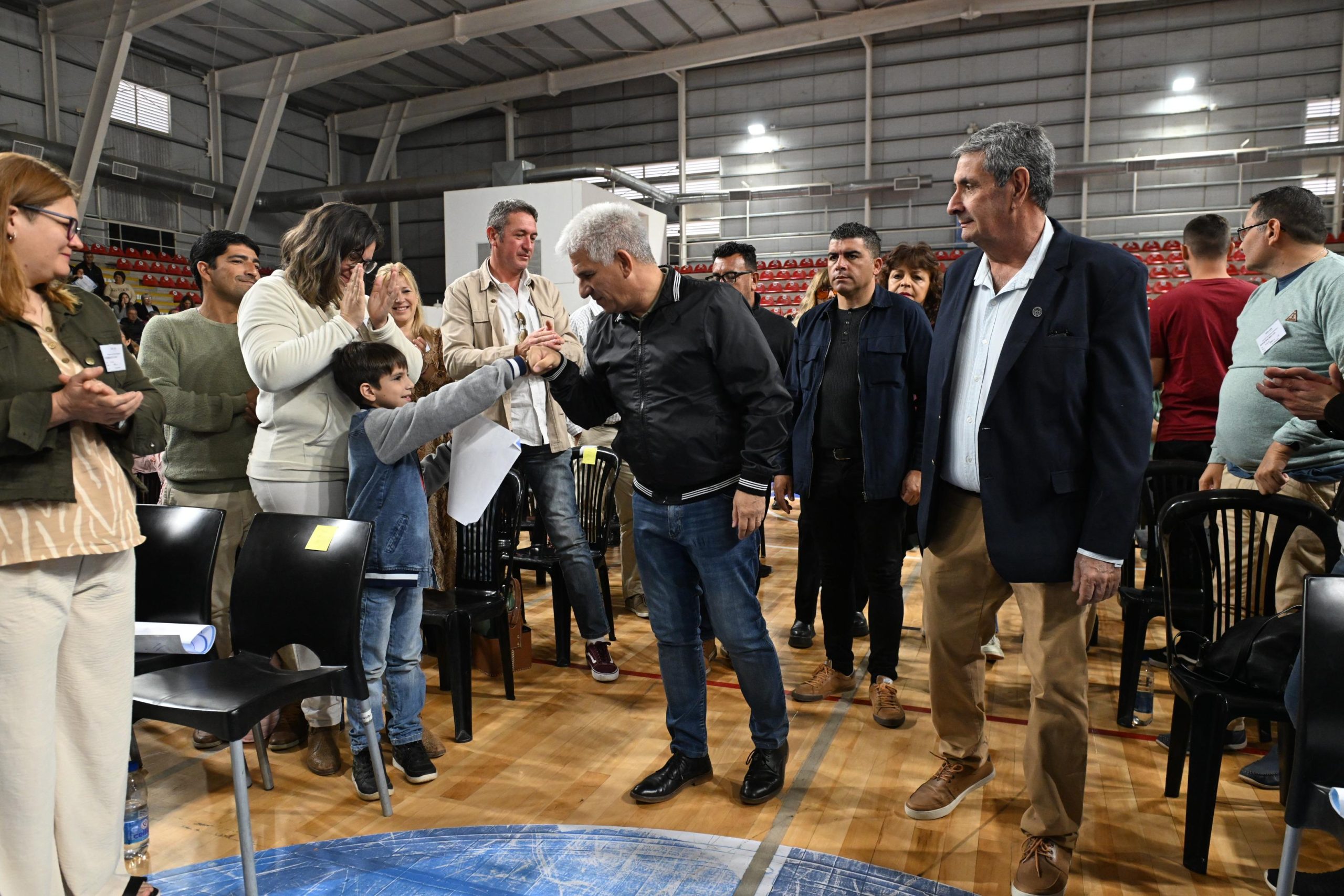 El gobernador Claudio Poggi, acompañado por el intendente Maximiliano Frontera y otras autoridades provinciales y municipales; encabezó el acto que incluyó la proyección de un video institucional, un emotivo discurso del Mandatario Provincial y la posterior entrega de carpetas con la documentación correspondiente —decretos, contratos y formularios— junto a las llaves que abrieron las puertas de una nueva etapa para las familias beneficiarias.