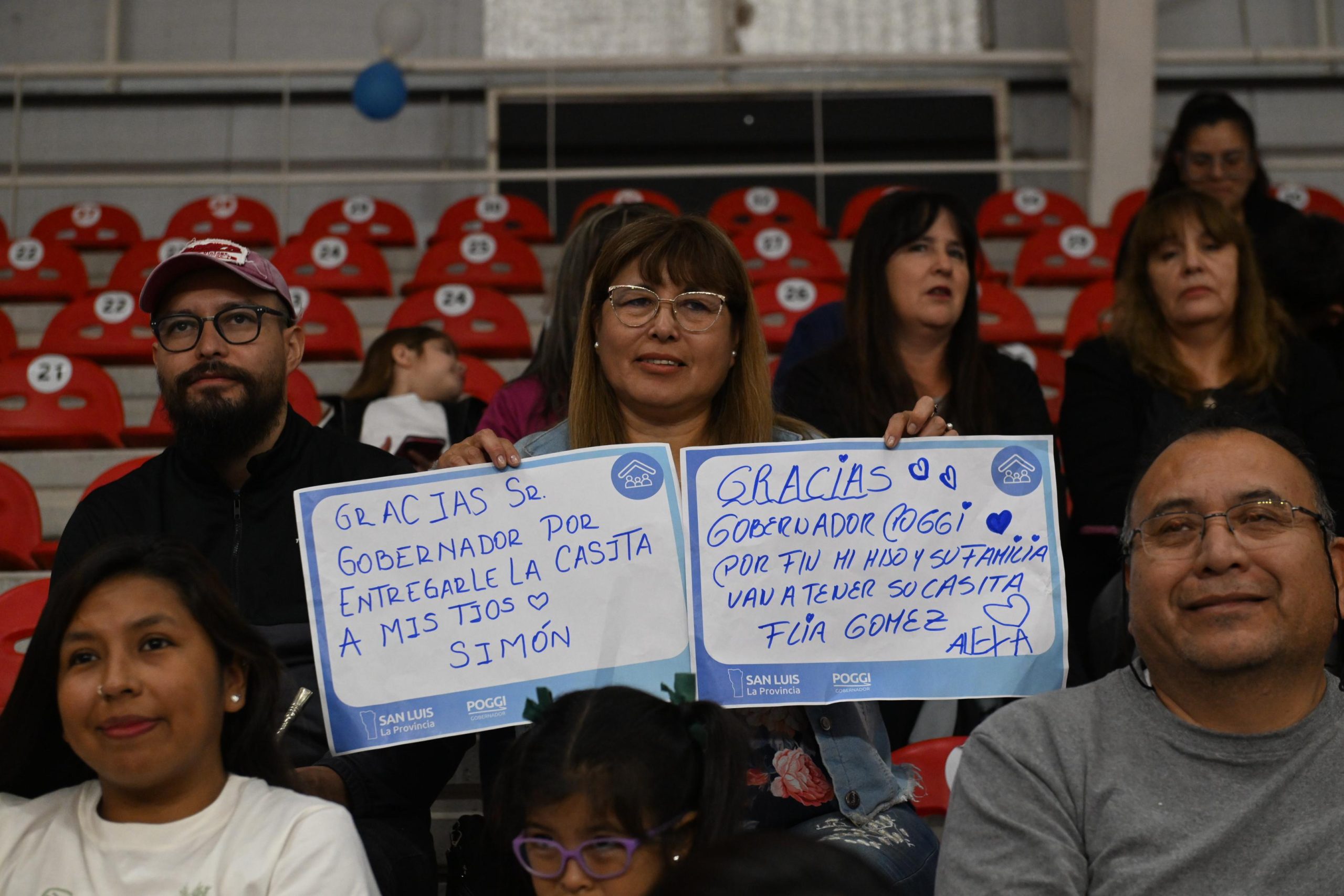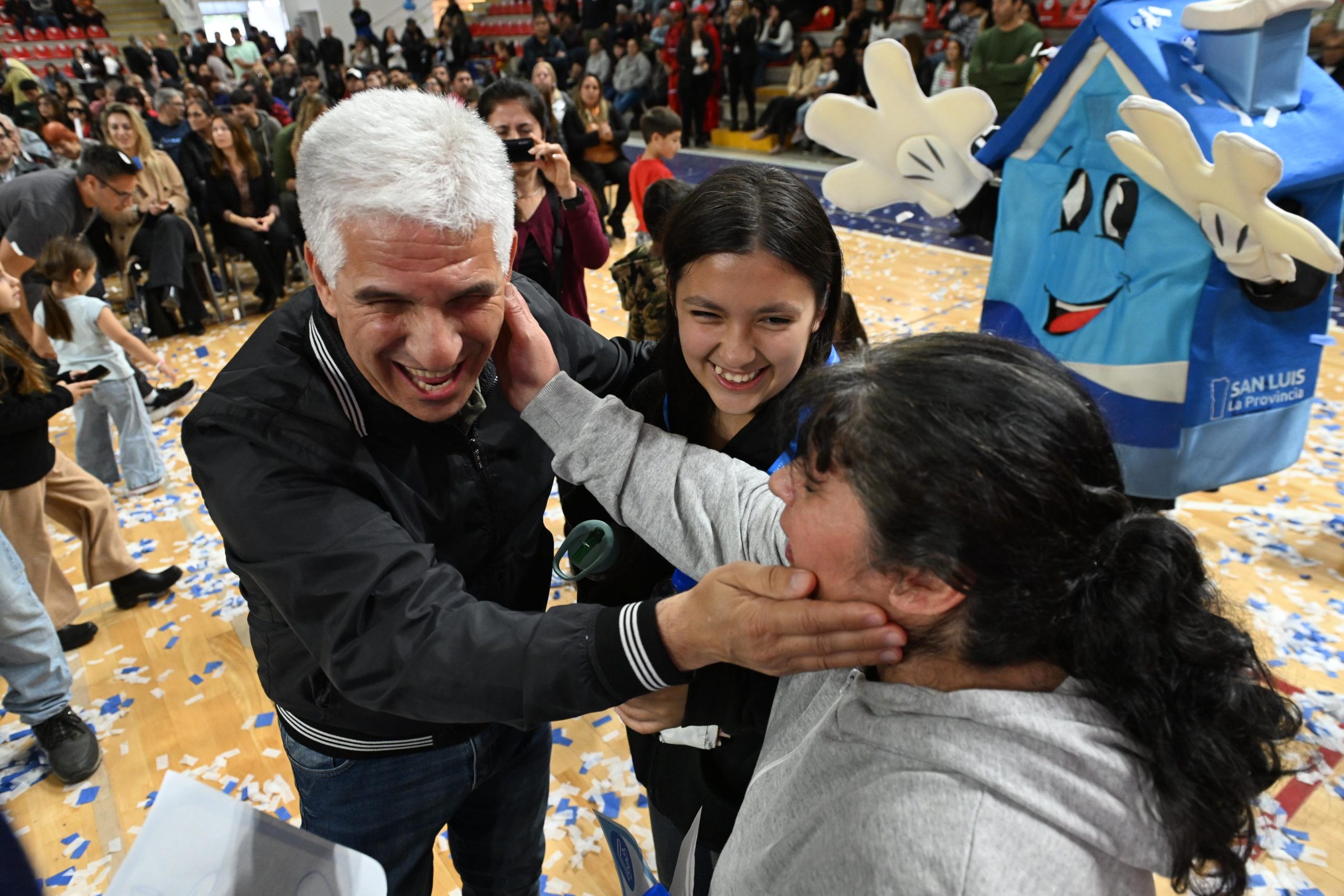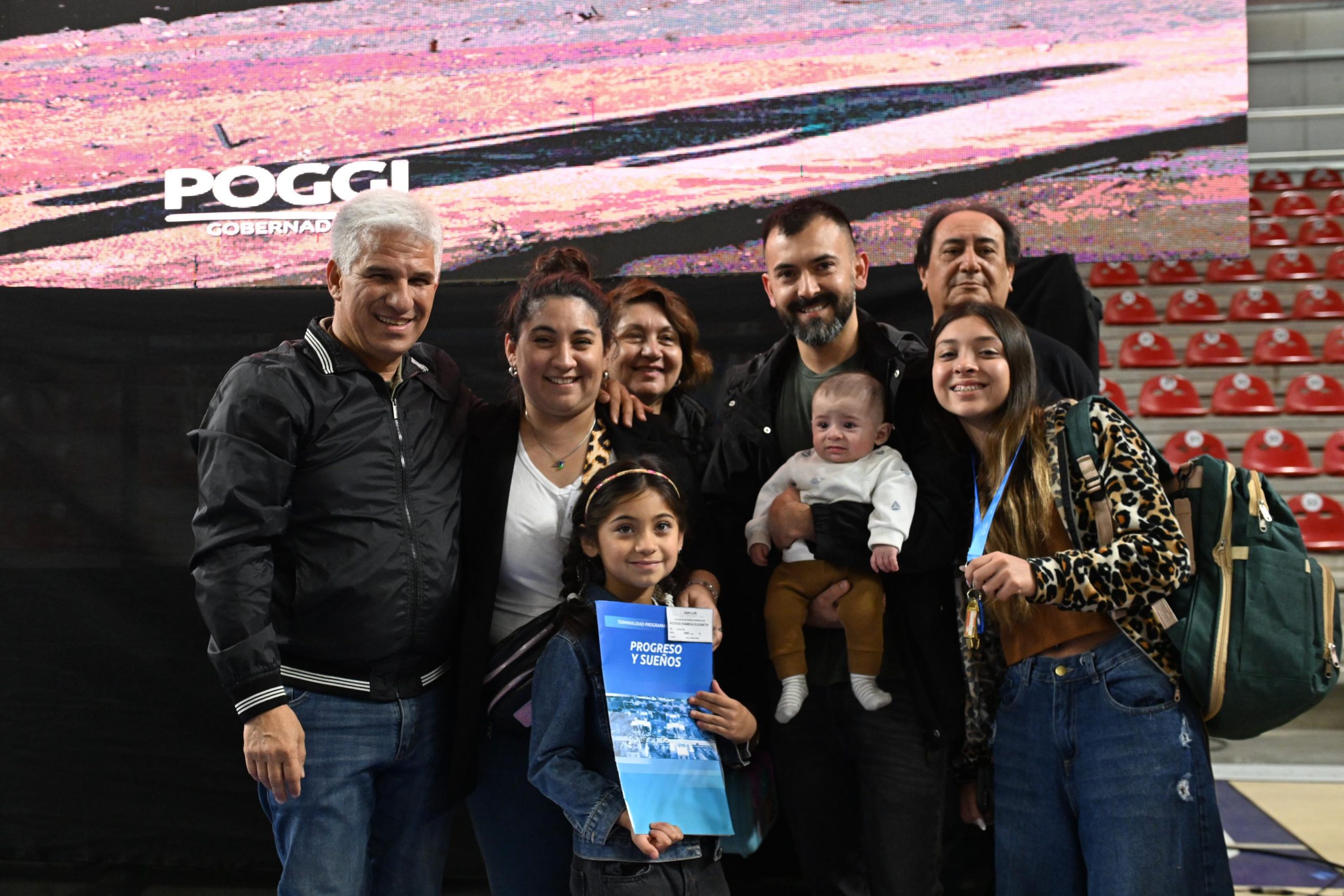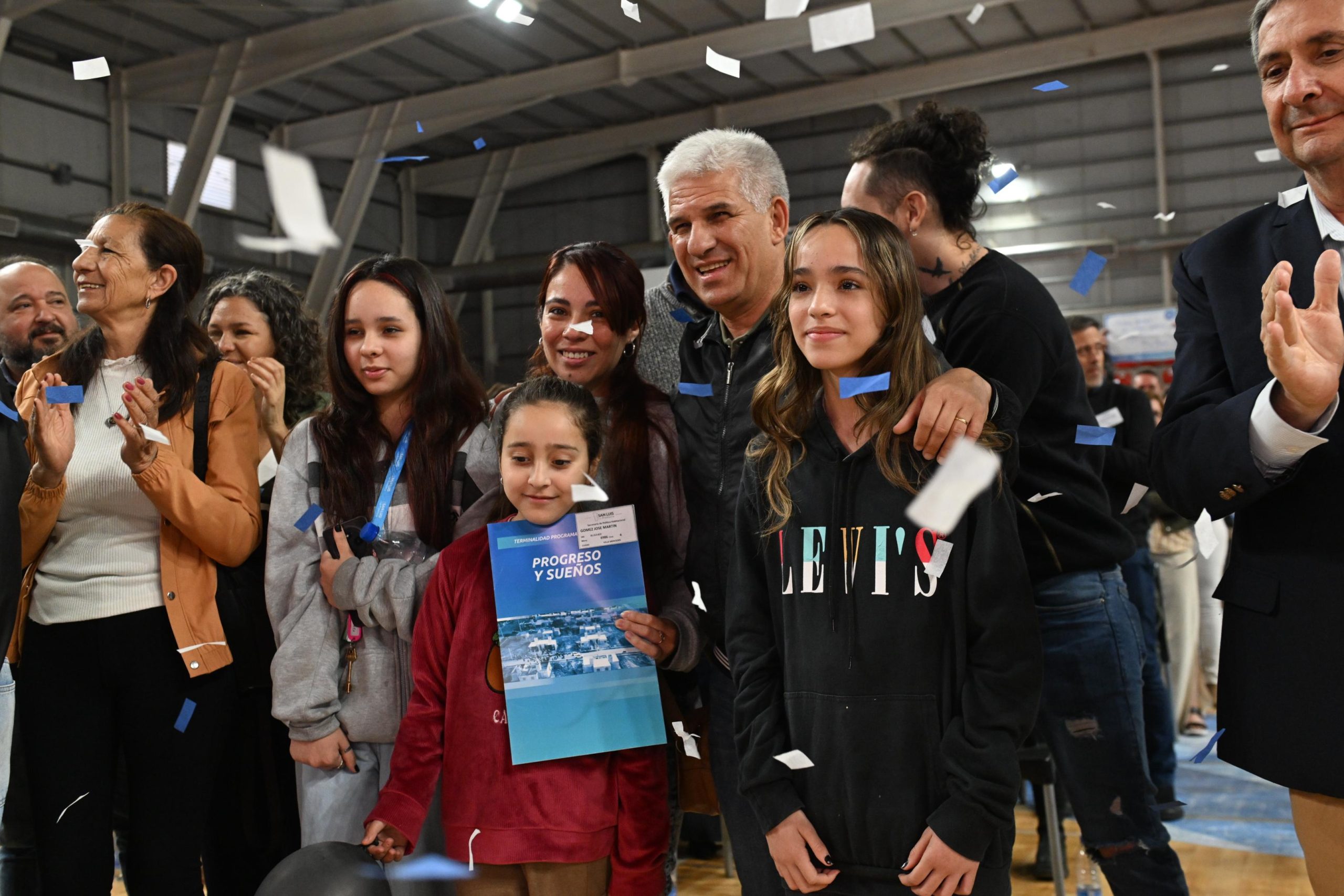 Con emoción y lágrimas, 116 familias recibieron las llaves de su hogar propio, durante un acto encabezado por el gobernador Claudio Poggi. Por cuestiones climáticas, la ceremonia se realizó en el estadio Arena del Parque La Pedrera, pero eso no impidió que el sentimiento fuera el mismo: una mezcla de orgullo, alivio y esperanza.