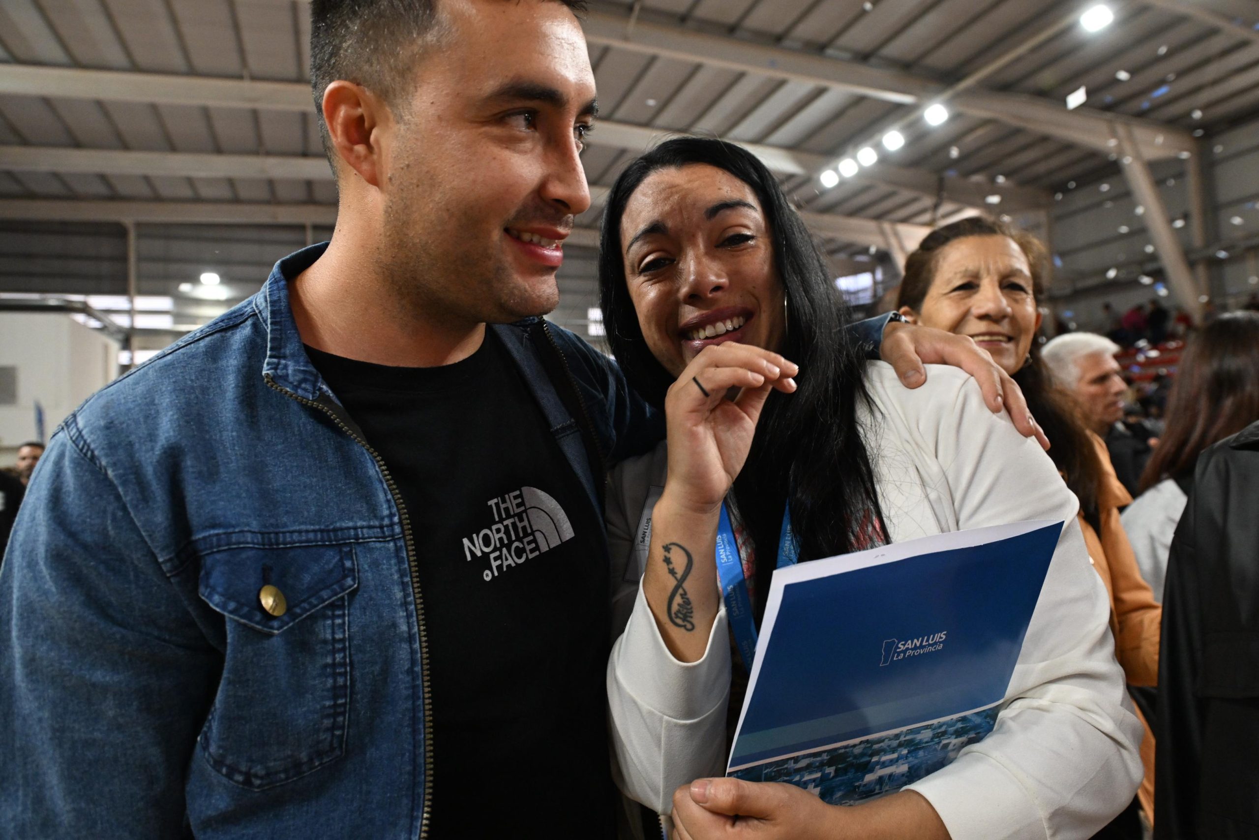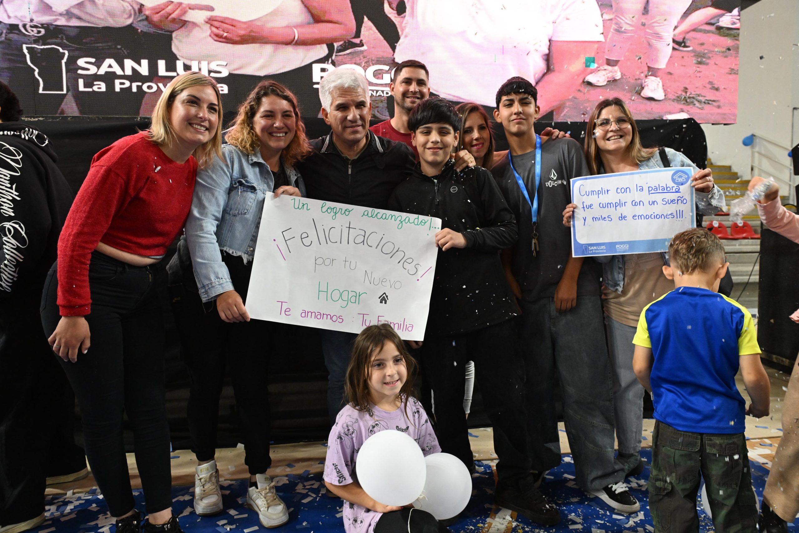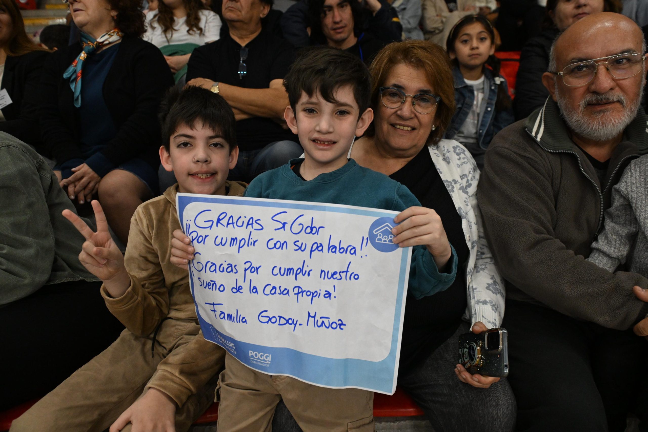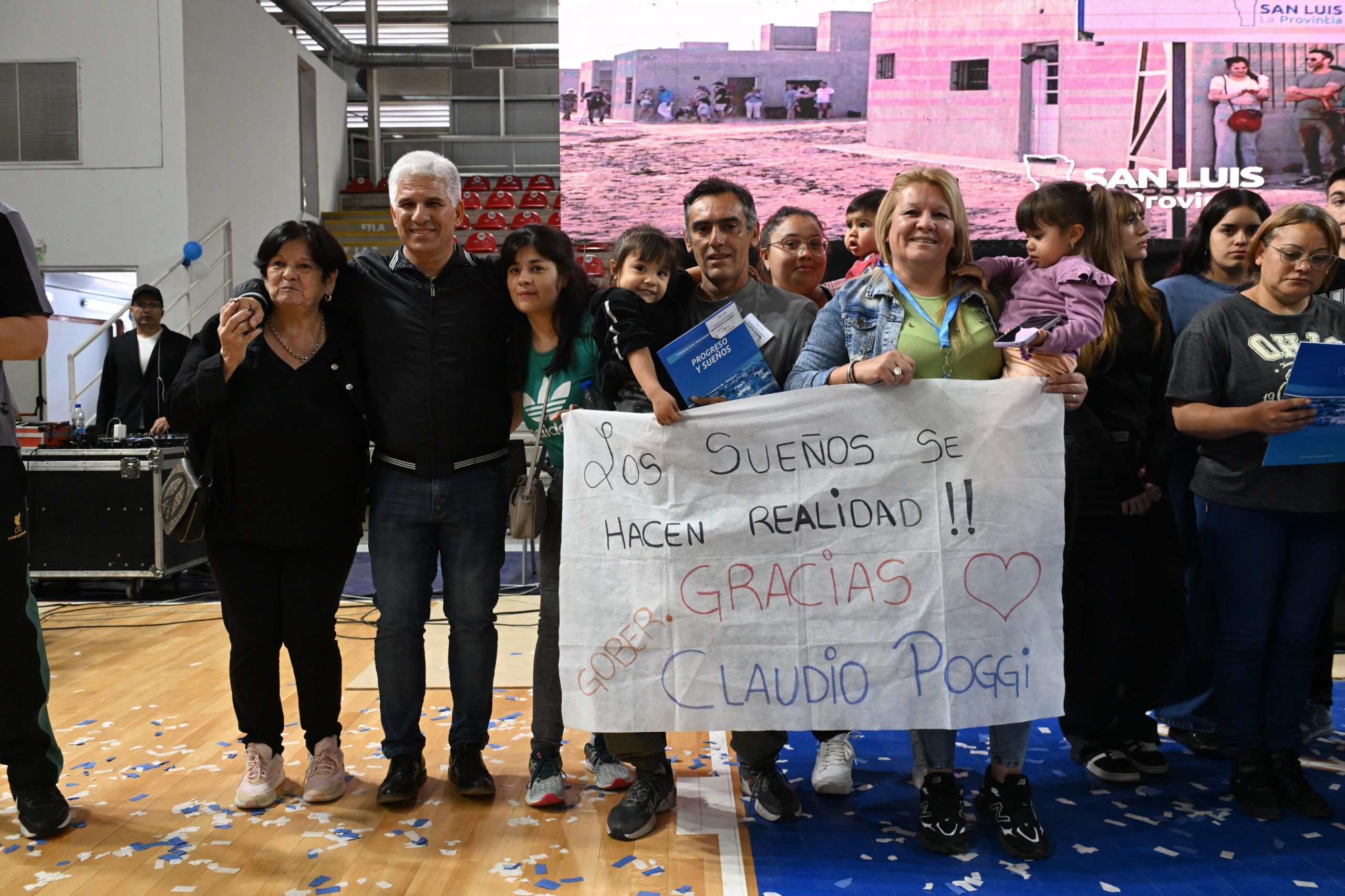 Con emoción y lágrimas, 116 familias recibieron las llaves de su hogar propio, durante un acto encabezado por el gobernador Claudio Poggi. Por cuestiones climáticas, la ceremonia se realizó en el estadio Arena del Parque La Pedrera, pero eso no impidió que el sentimiento fuera el mismo: una mezcla de orgullo, alivio y esperanza.