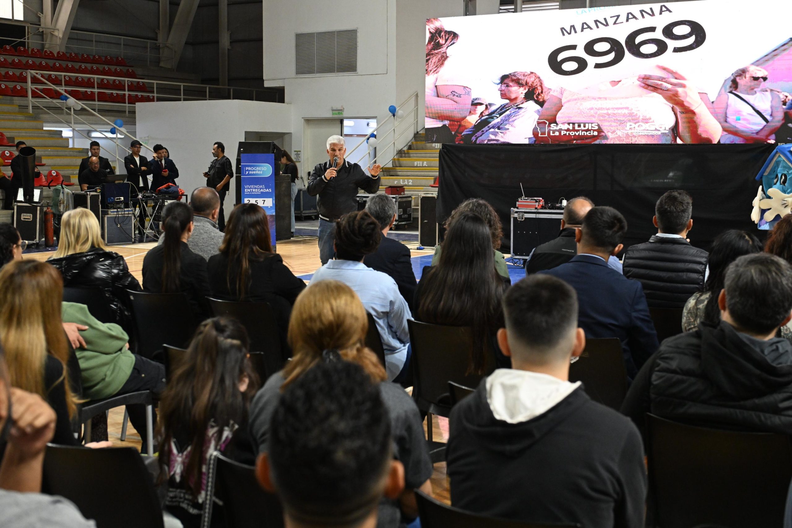 Con emoción y lágrimas, 116 familias recibieron las llaves de su hogar propio, durante un acto encabezado por el gobernador Claudio Poggi. Por cuestiones climáticas, la ceremonia se realizó en el estadio Arena del Parque La Pedrera, pero eso no impidió que el sentimiento fuera el mismo: una mezcla de orgullo, alivio y esperanza.