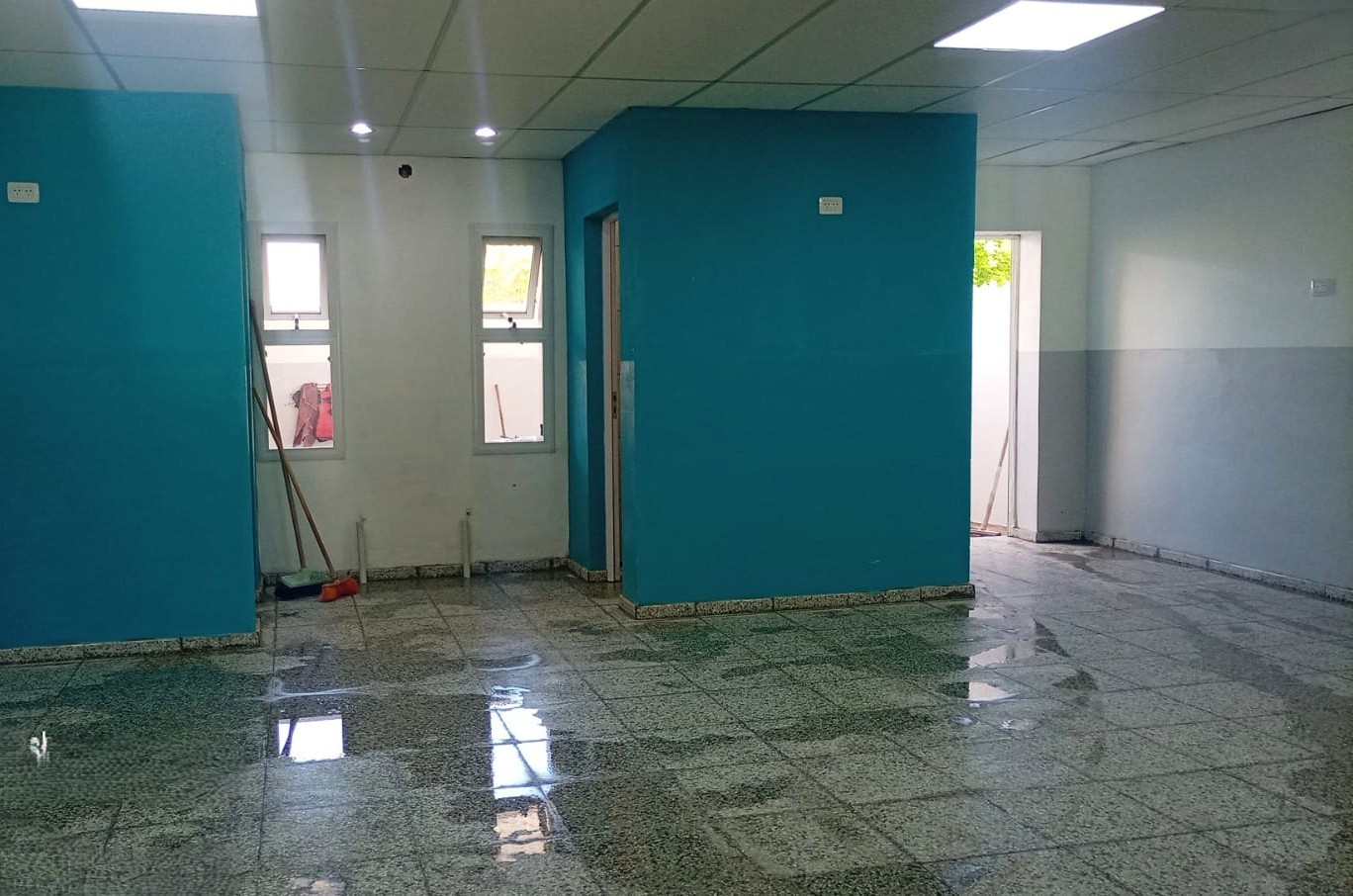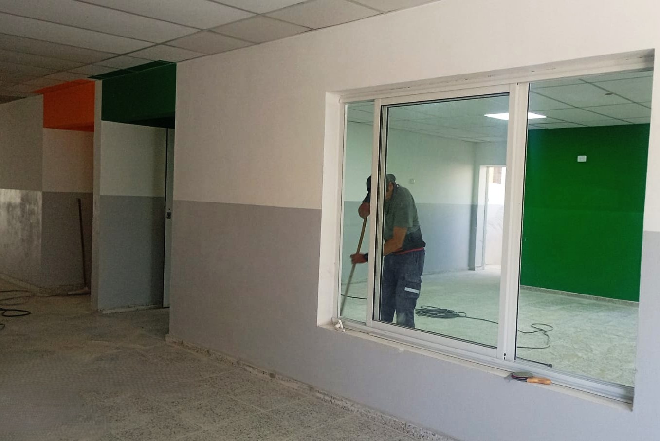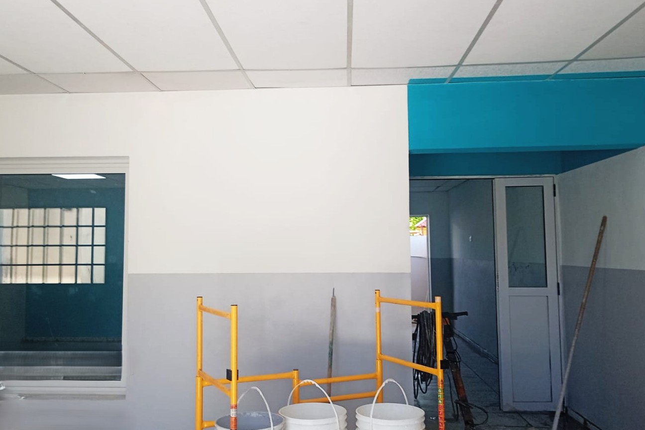Actualmente los trabajos se centran en pintura, colocación de aberturas y cerámicos, terminaciones y limpieza. También realizaron pruebas en las instalaciones eléctricas y sanitarias, se concluyó el cierre perimetral y se ejecutó un nuevo ingreso con un patio de formación para independizar el nivel Inicial del resto del establecimiento.
