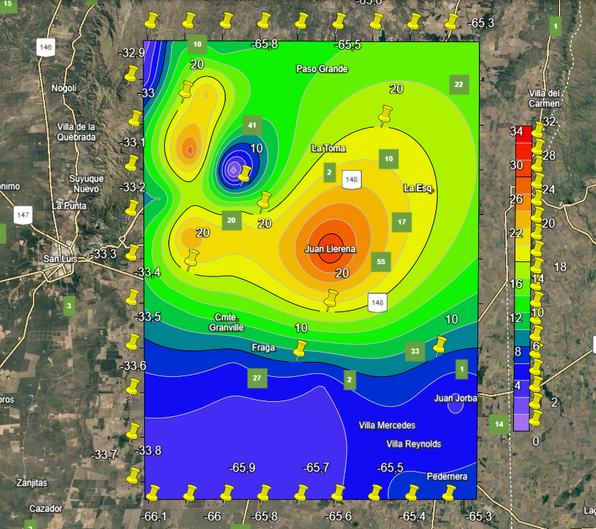 Para recabar la información, los profesionales de San Luis Agua supervisan constantemente las estaciones que cada 15 minutos registran automáticamente las precipitaciones. Esa información viaja en tiempo real y permite anticipar cómo y cuándo se moverán los caudales en la cuenca. Finalizado el periodo de lluvias, los datos obtenidos se utilizan para graficar en el mapa cómo fueron las precipitaciones allí.