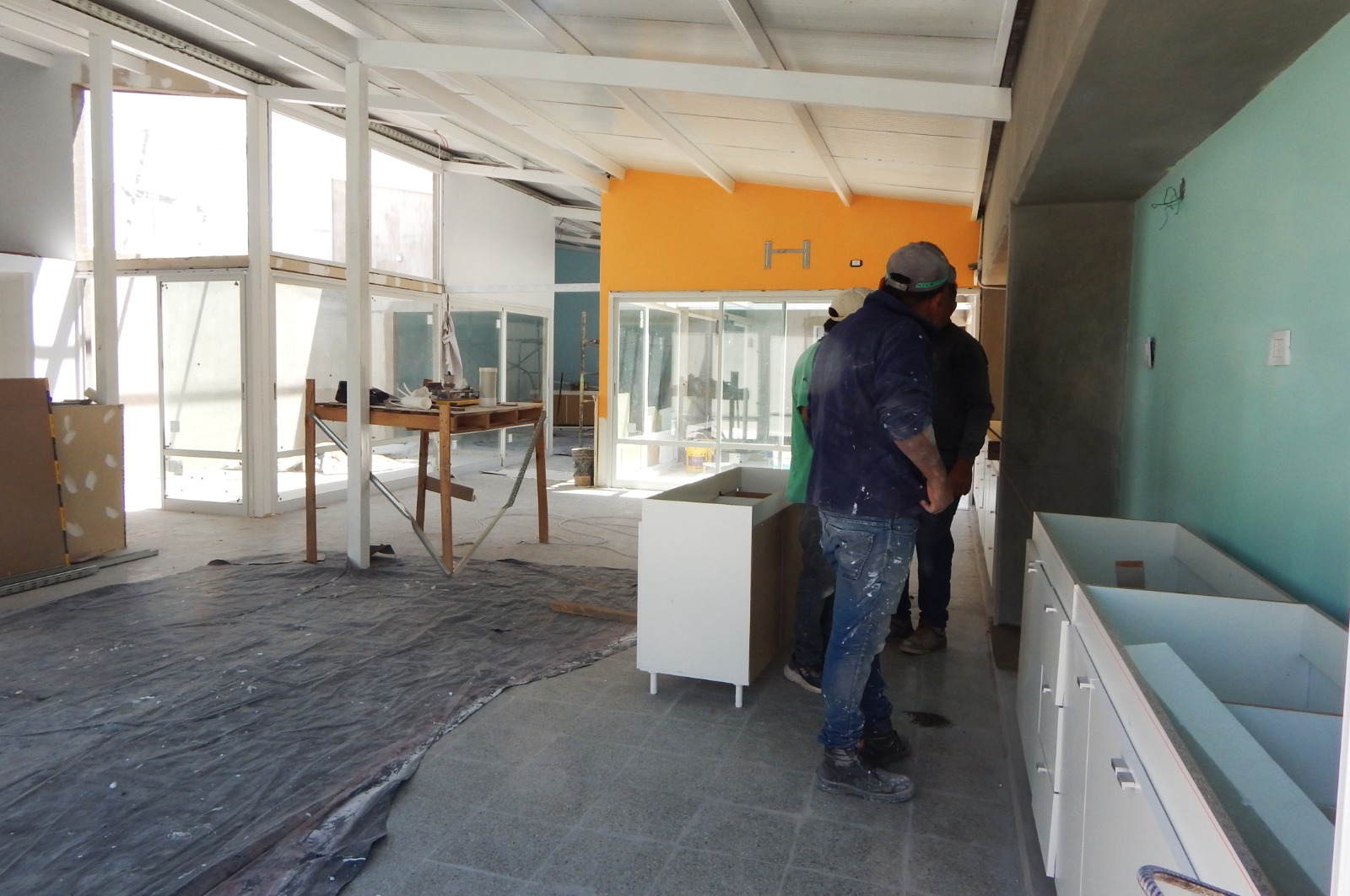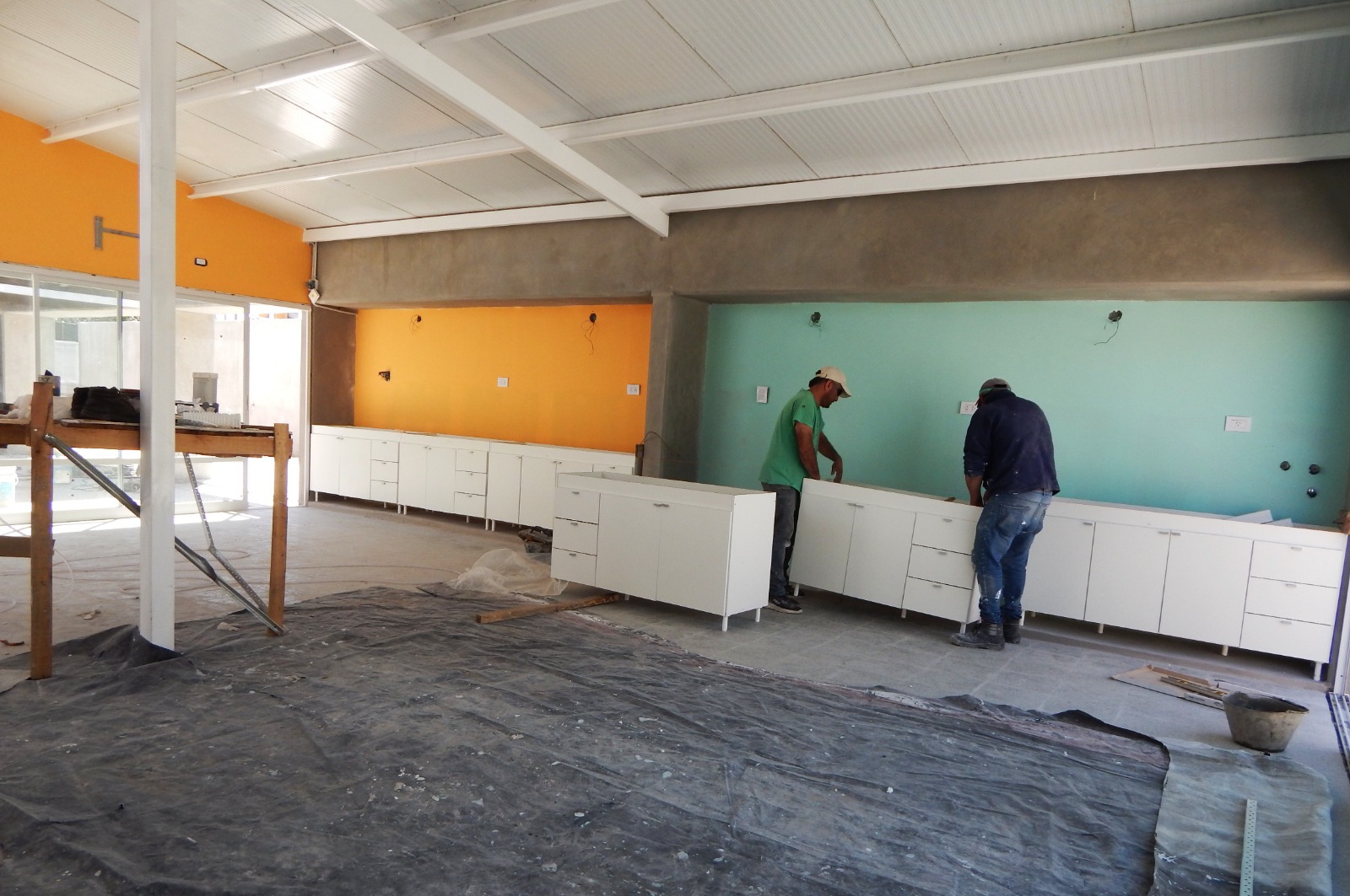 La dirección de Obras de Arquitectura y Viviendas indicó que actualmente se realizan trabajos de colocación de carpinterías, instalación de equipamiento en el área de cocina y ajustes en los sistemas eléctricos y de iluminación. Además, se concluyeron los revoques, la pintura interior y los cerramientos vidriados, lo que permite apreciar la fisonomía definitiva del edificio.