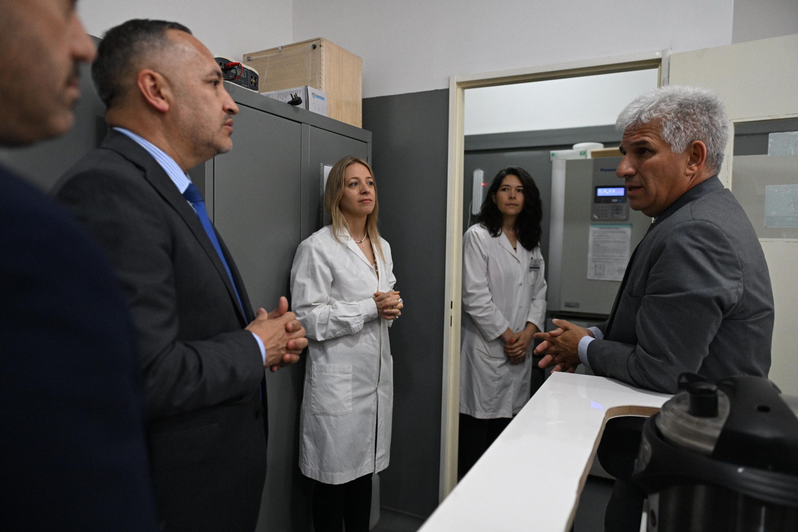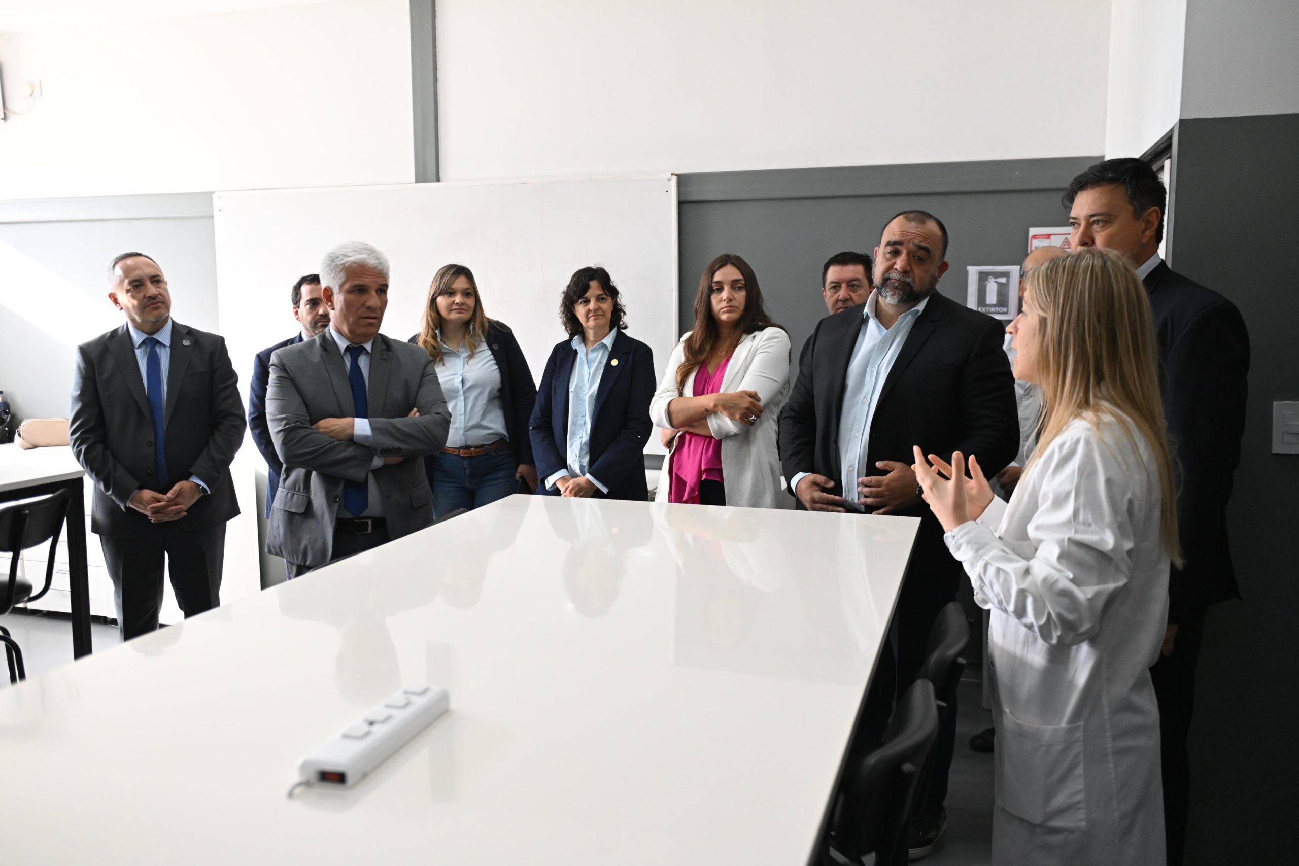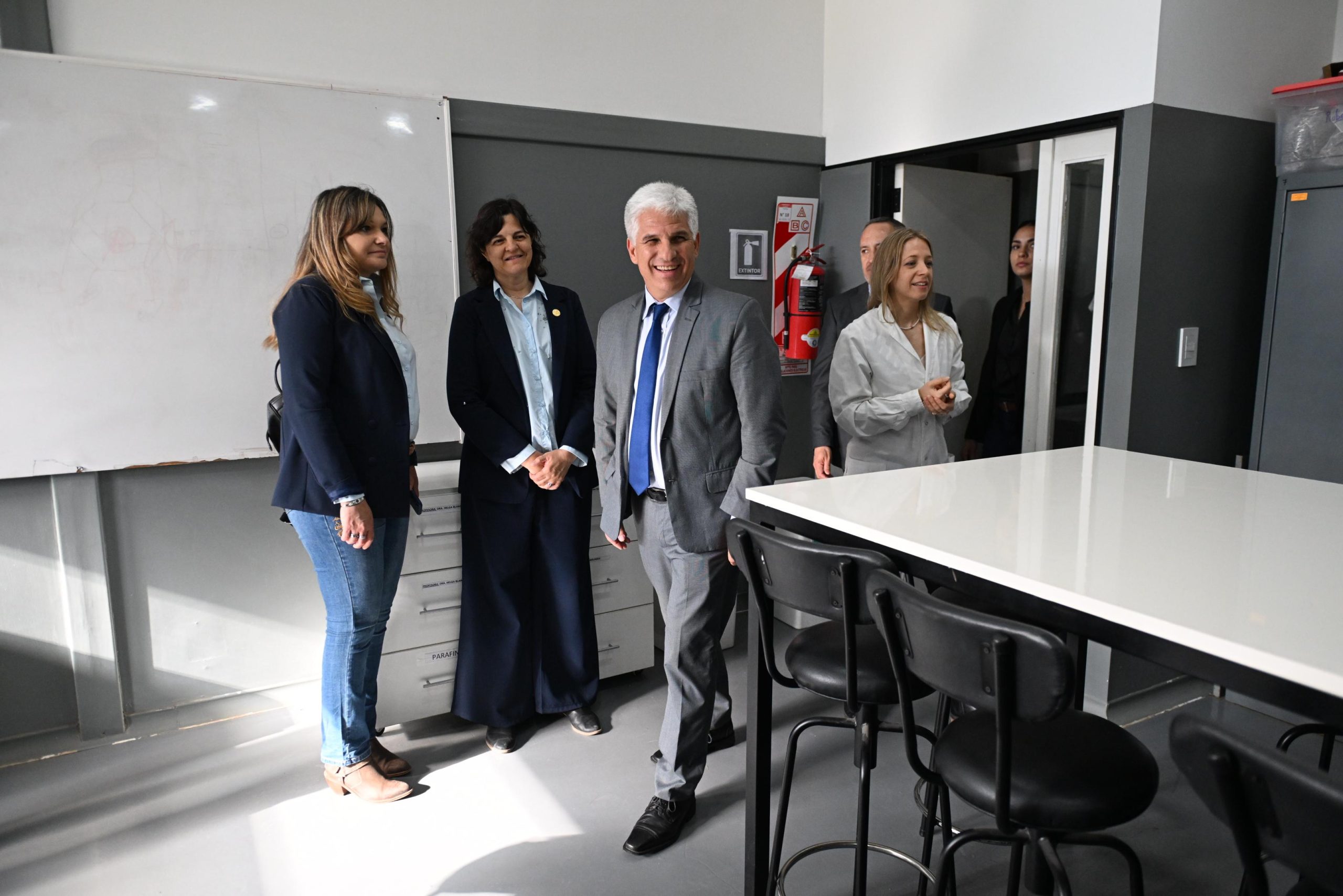 La comitiva recorrió las instalaciones, incluyendo el laboratorio central, que forma parte de los cuatro módulos previstos dentro del plan de infraestructura universitaria.