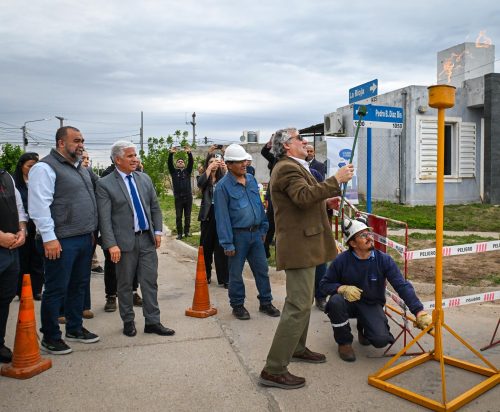 El gobernador Claudio Poggi encabezó junto al intendente Maximiliano Frontera la inauguración de la red de gas natural que beneficiará a 392 hogares del barrio 1.010 Viviendas, en el sector este de Villa Mercedes.