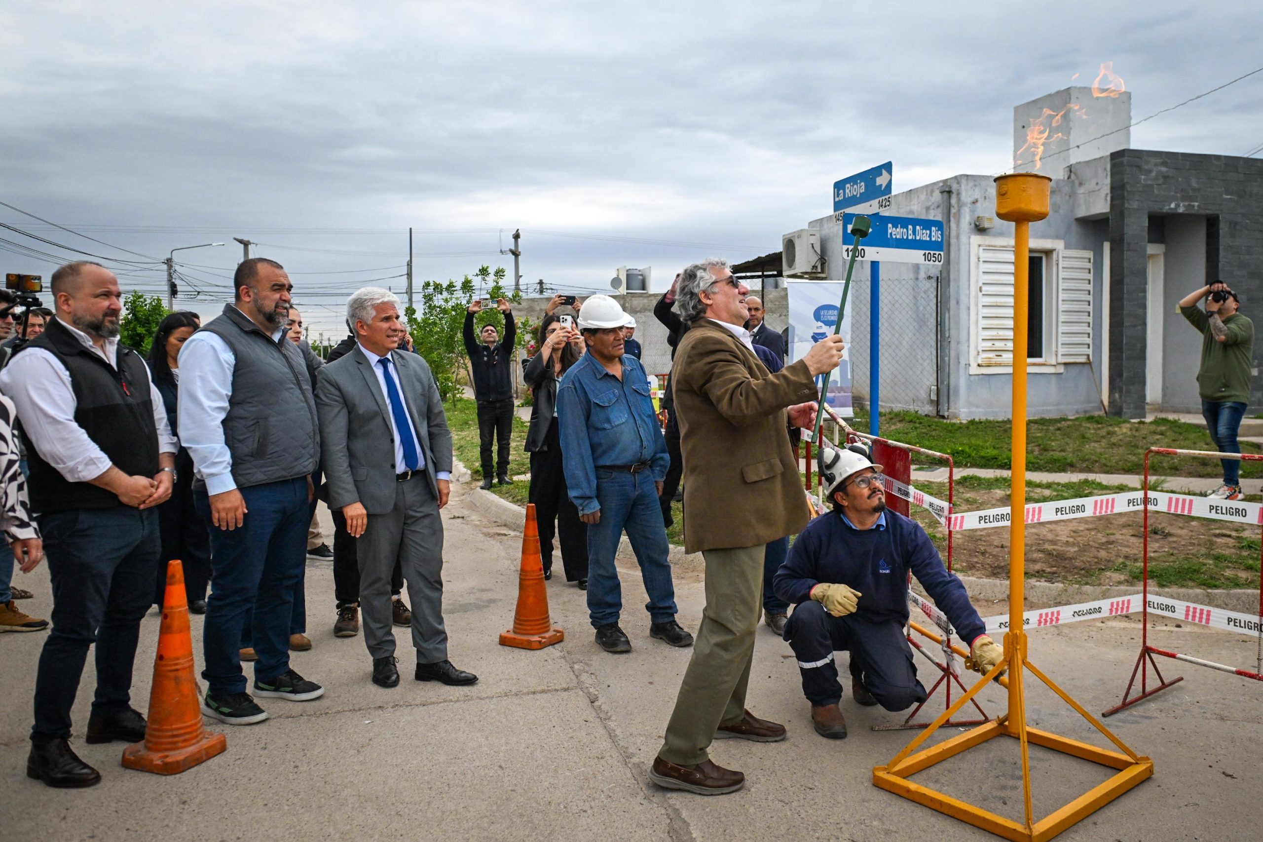 El gobernador Claudio Poggi encabezó junto al intendente Maximiliano Frontera la inauguración de la red de gas natural que beneficiará a 392 hogares del barrio 1.010 Viviendas, en el sector este de Villa Mercedes.