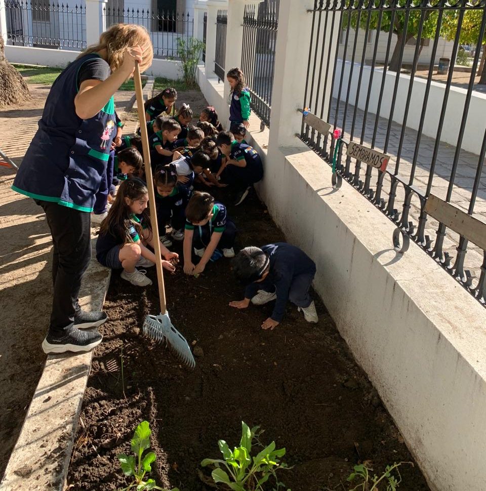 A través del trabajo en la huerta, los alumnos de nivel Inicial aprendieron a sembrar, regar y cosechar. Cada tarea los invitó a colaborar, valorar el esfuerzo compartido y descubrir que el aprendizaje crece, al igual que las plantas, cuando se cultiva con compromiso, dedicación y mucho amor.