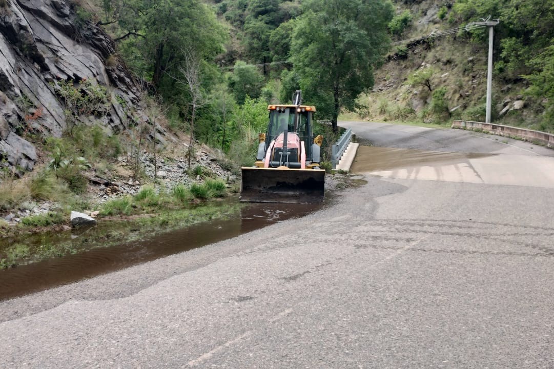 Hubo desmoronamientos en distintos tramos y se formaron bancos de agua y barro. También se trabaja en la ruta N°8 con tareas similares.