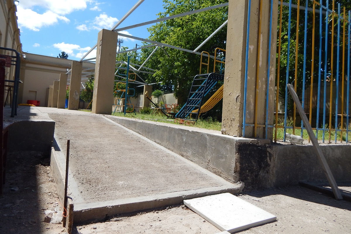 La dirección de Obras de Arquitectura y Viviendas precisó que en la institución de nivel Inicial actualmente renuevan el piso del patio de formación y se construyeron rampas para un tránsito más seguro de los chicos, además de brindar accesibilidad a personas con movilidad reducida. También se han incorporado nuevos juegos mientras que en el sector interior se continúa con la adecuación de los espacios para establecer dos nuevas salas de 3 años.