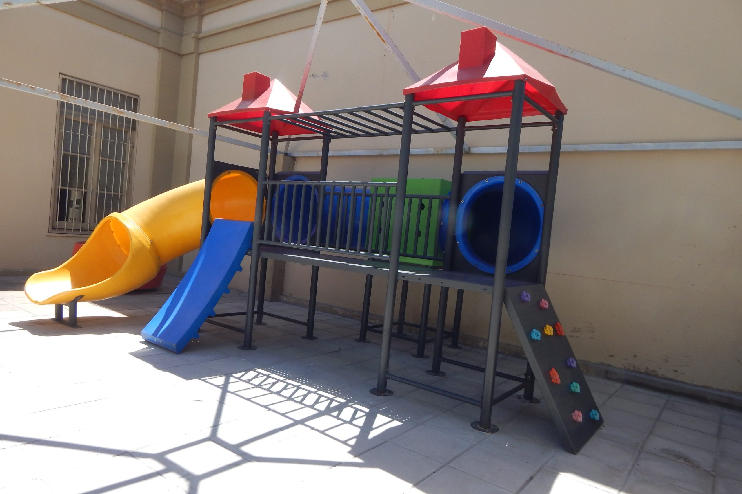 En la ENI ‘Garabatos’ se trabaja en la reestructuración de tres aulas existentes para sumar dos nuevas salas de 3 años. En paralelo remodelan el piso del patio de formación e incorporan rampas y nuevos juegos. También se adelanta con los baños exteriores de Primario y Secundario.