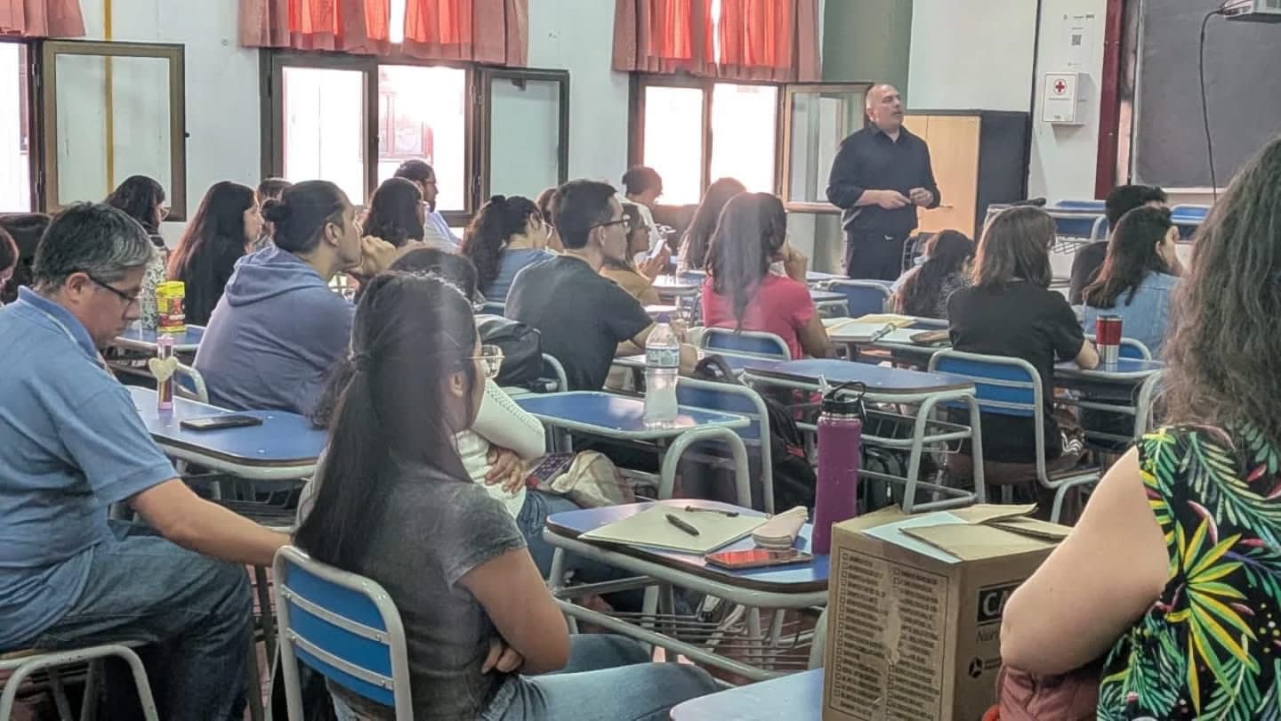 En la UNSL, más de 100 estudiantes de distintos profesorados, junto a docentes y autoridades de rectorado y facultades, participaron de una charla a cargo de Claudio Vázquez, subdirector de Bienestar Escolar. Durante la jornada, se compartieron herramientas orientadas a promover la convivencia y el cuidado de la salud integral en el ámbito escolar, abordando temáticas como bullying, ciberbullying, discriminación, consumos problemáticos y protocolos de actuación ante distintas situaciones. Todos ellos, comprendidos dentro del Guiarse.