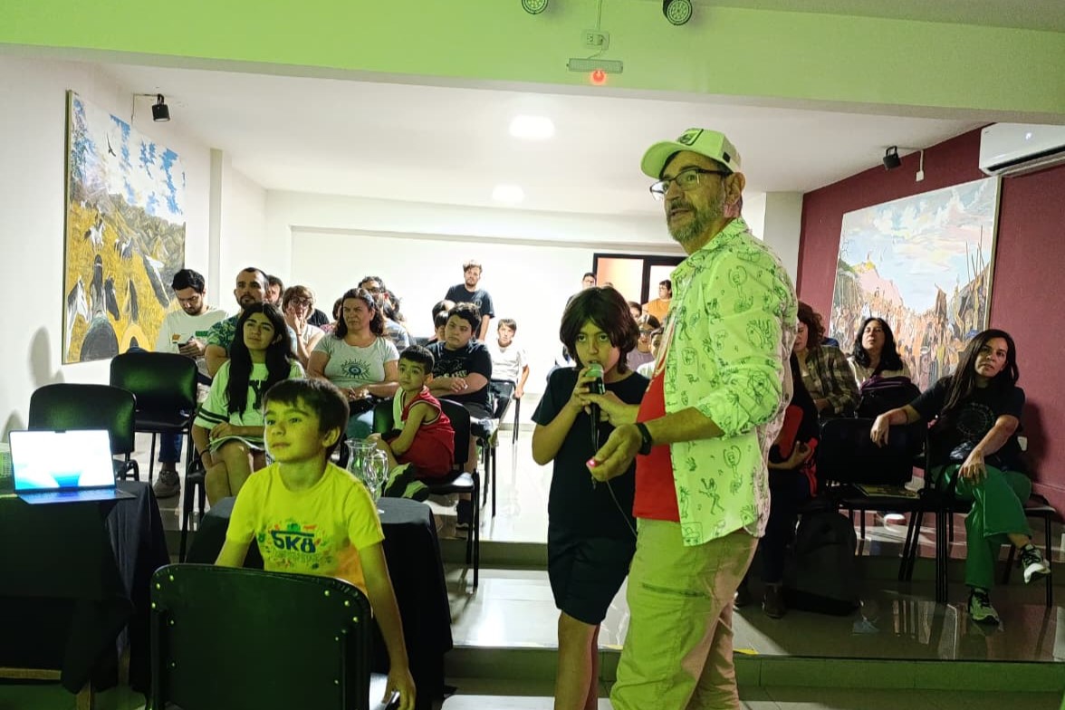 Entre trazos y risas, el artista mendocino conquistó este martes por la tarde a grandes y chicos en el Museo Histórico de San Luis.