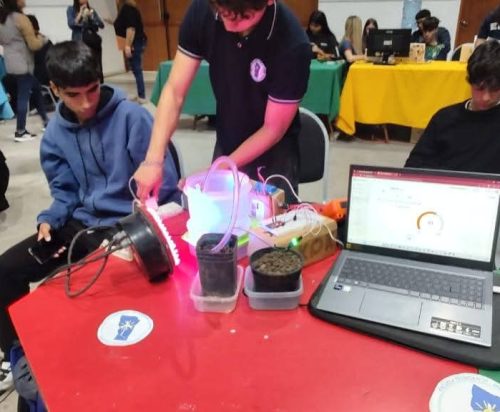 Por otro lado, los alumnos de 5° ‘A’ presentaron un sistema de riego automatizado, con control de humedad y monitoreo a distancia a través de una aplicación móvil. Este proyecto integra sensores, microcontroladores y conectividad wi-fi para optimizar el uso del agua, aportando soluciones prácticas al manejo sustentable de los recursos naturales.