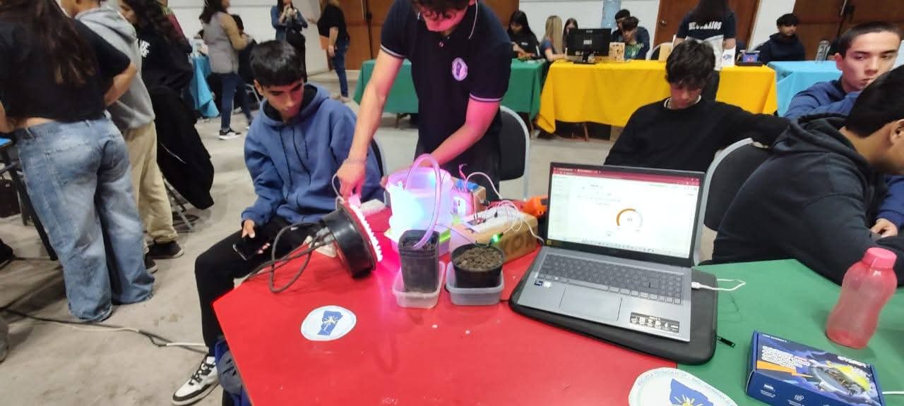 Por otro lado, los alumnos de 5° ‘A’ presentaron un sistema de riego automatizado, con control de humedad y monitoreo a distancia a través de una aplicación móvil. Este proyecto integra sensores, microcontroladores y conectividad wi-fi para optimizar el uso del agua, aportando soluciones prácticas al manejo sustentable de los recursos naturales.