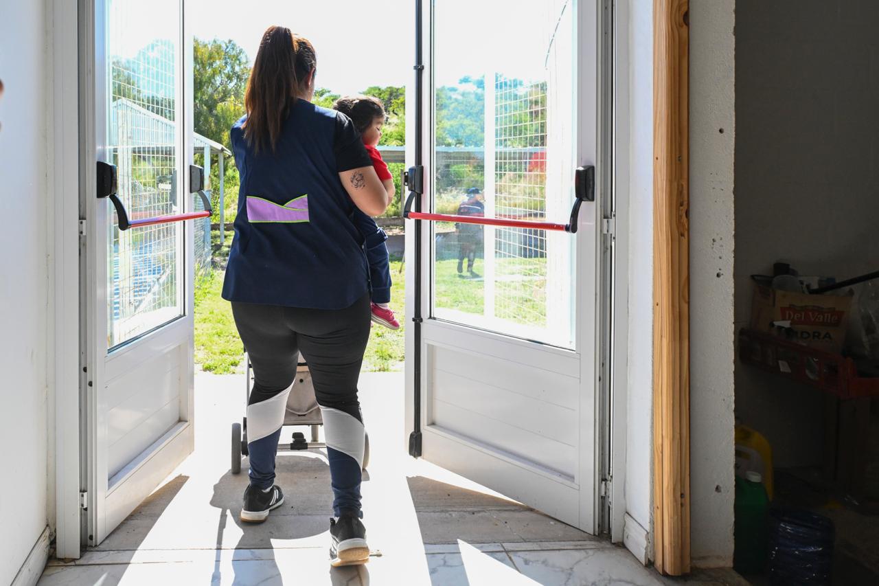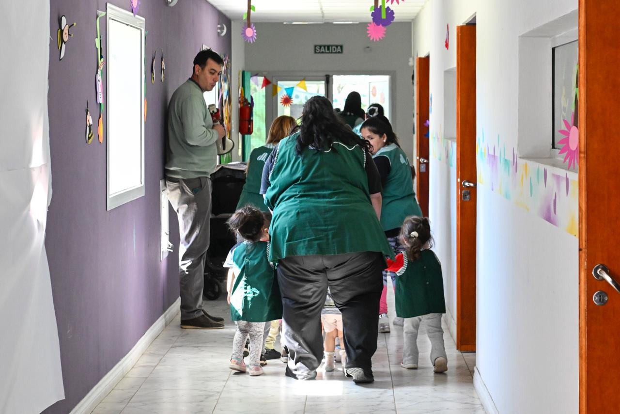 Los niños y bebés que se encontraban en sus respectivas salitas, salieron hacia el pasillo acompañados por sus docentes. Los miembros del CDI procuraron amenizar el momento e invitaron a los pequeños a tomarse de las manos para dirigirse al exterior del edificio.
