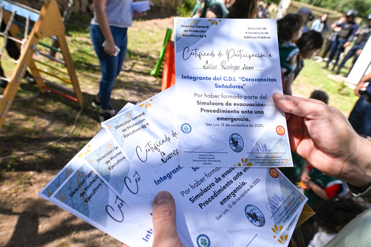 A modo de premio, los pequeños recibieron unas medallas hechas con hilos de colores y goma eva en compensación a cómo respondieron al simulacro. A su vez, los integrantes del CDI recibieron certificados de participación.