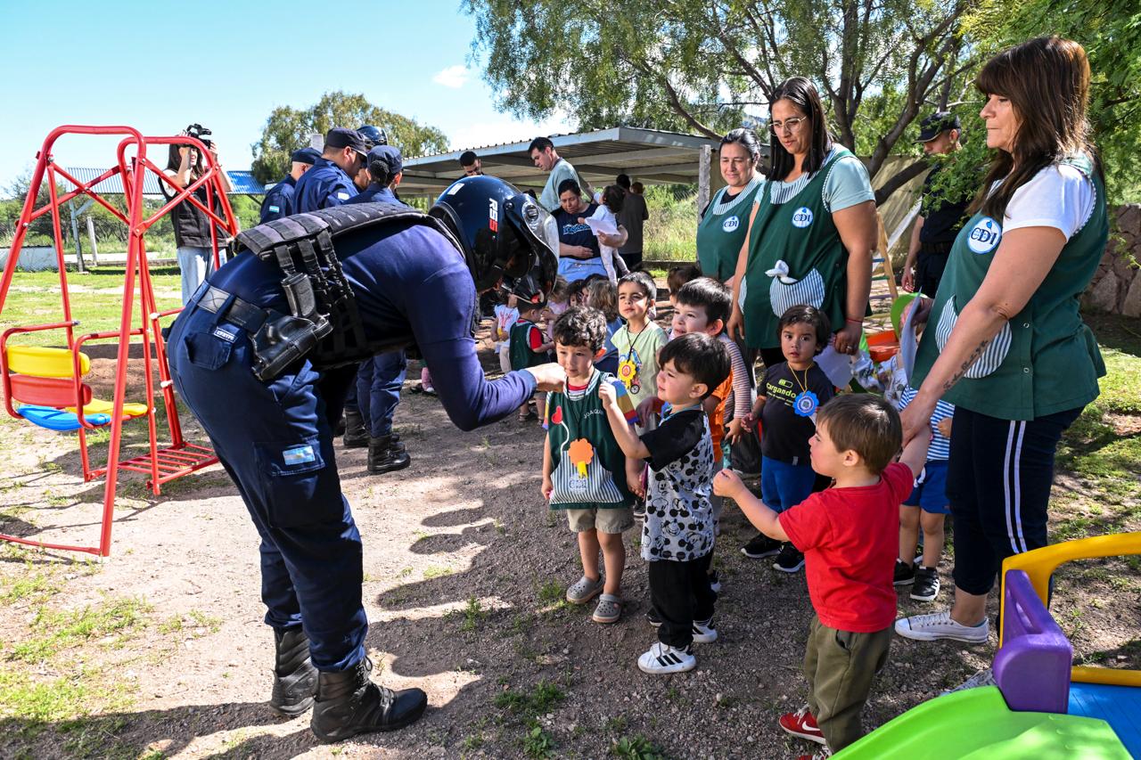 La actividad tuvo como propósito representar los protocolos de seguridad que deben ejecutarse frente a circunstancias de emergencia, con especial foco en la prevención. Los efectivos policiales asistieron al CDI y en conjunto encendieron las sirenas de sus motocicletas para avisar el comienzo de la evacuación.