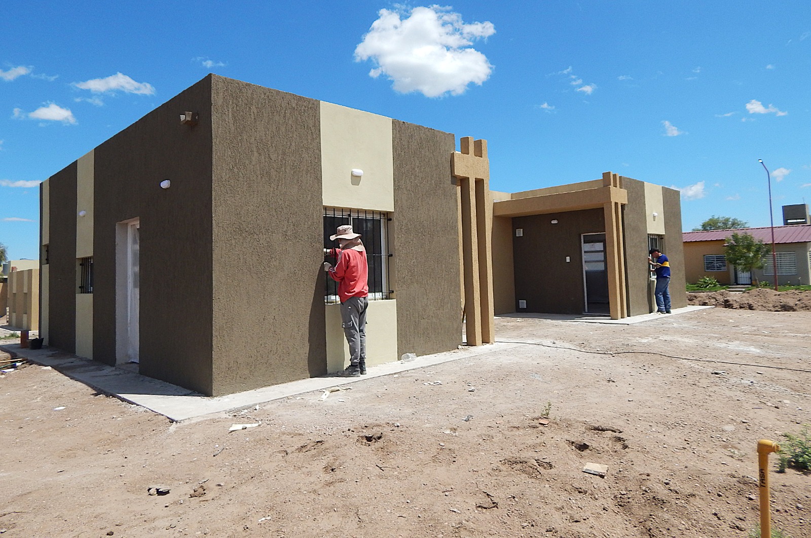 La dirección de Obras de Arquitectura y Viviendas detalló que las unidades corresponden a la terminalidad de los planes ‘Progreso’ y ‘Sueños’, y que presentan un alto grado de avance: las estructuras principales, techos y muros ya están concluidos, con revoques y pintura exterior aplicados en tonos beige y marrón.