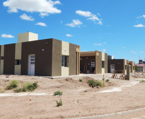 En el entorno inmediato se observan veredas aplicadas junto con sectores de zanjeo destinados a la conexión de servicios. “El estado general es de un avance muy próximo a la finalización de las viviendas, con ajustes menores pendientes en exteriores y obras complementarias”, señalaron desde la repartición.