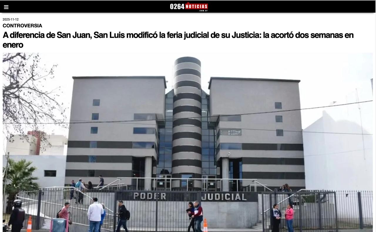 Por otro lado, La Política on line informó en la nota ‘San Luis reduce la feria judicial’: “La ley entrará en vigencia a partir del 31 de diciembre de 2026, otorgando un año de adecuación al sistema judicial y al ejercicio profesional de los abogados. El texto es el resultado de una agenda de diálogo impulsada por el Gobierno provincial”.
