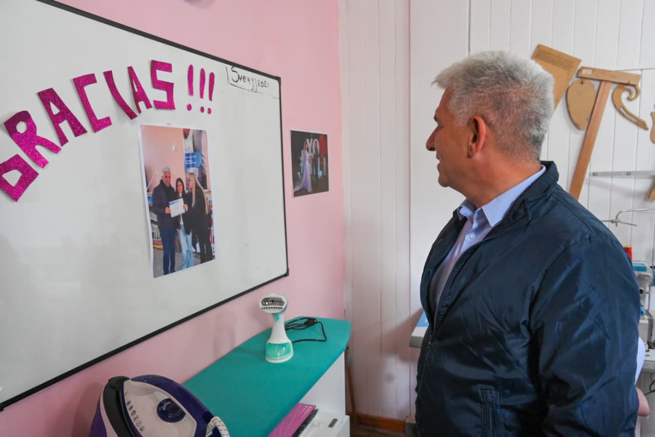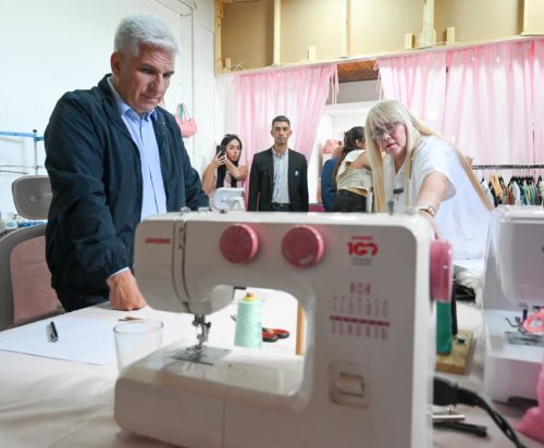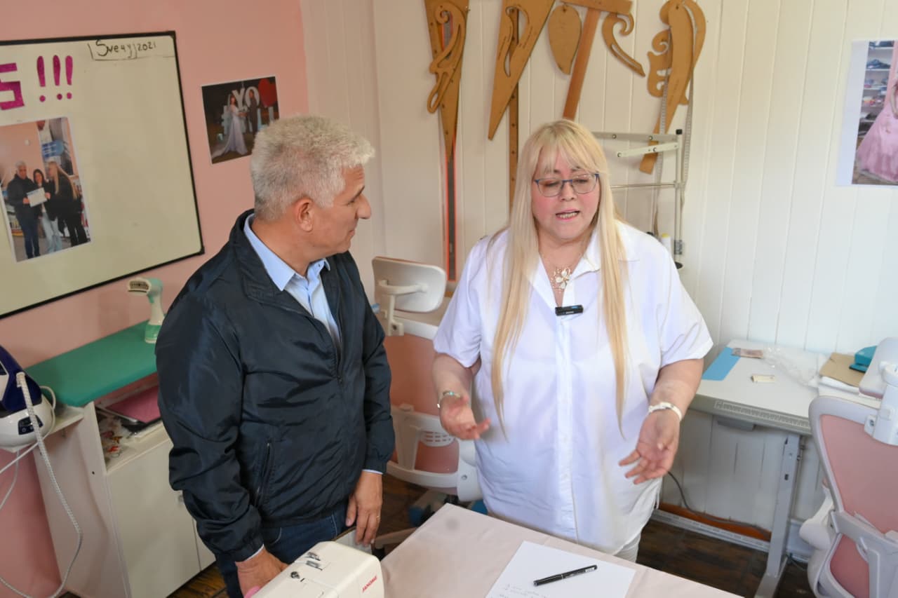 Con mucho entusiasmo, el Mandatario escuchó la historia de las emprendedoras y se interiorizó sobre las distintas prendas que fabrican. “Hacemos ropa a medida en talles reales, con especialidad en vestidos y blusas de fiesta o eventos como bautismos, cumpleaños de 15, egresos, etcétera. También incorporamos una línea masculina talle plus, a pedido de los clientes, y un espacio de ropa de otras marcas como jeans o calzas deportivas que acompañan nuestra producción propia”, comentó la socia.