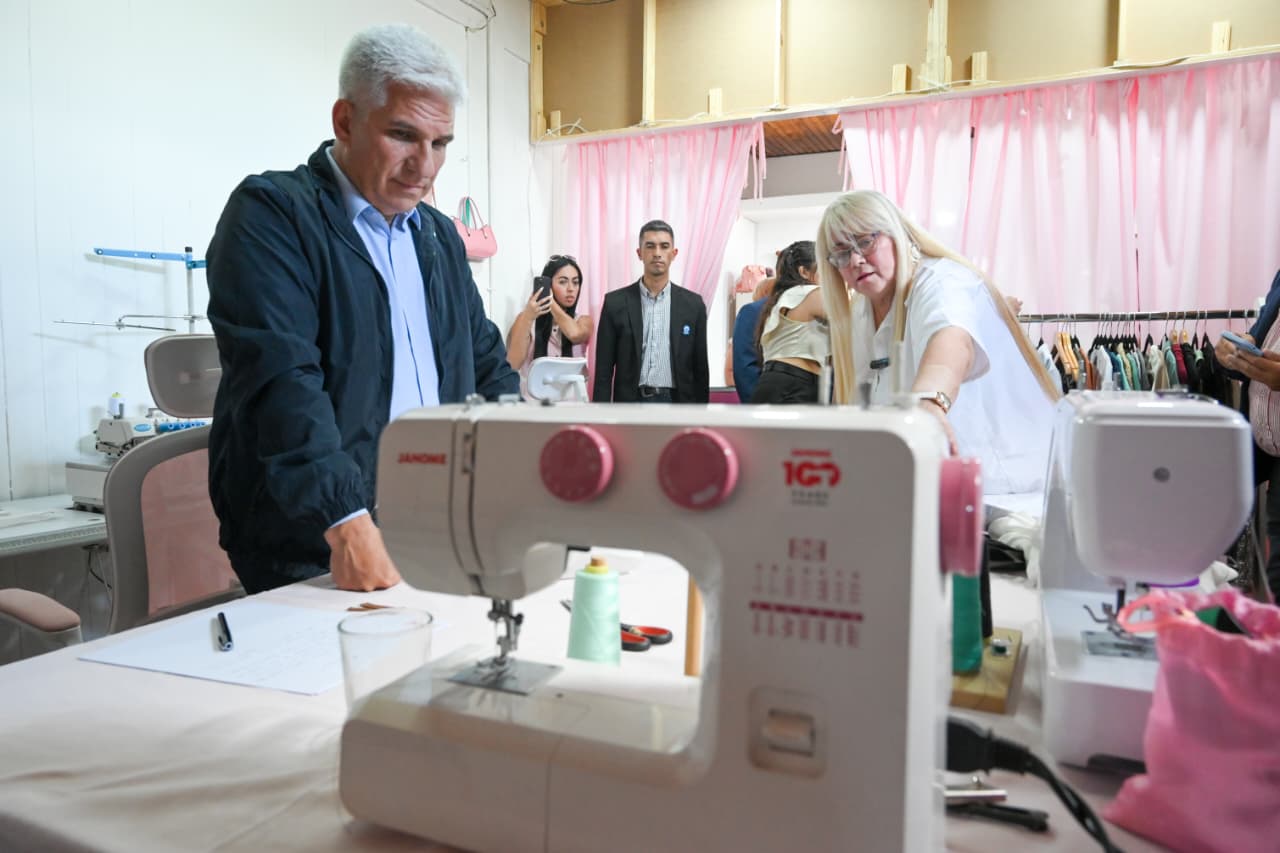 Con mucho entusiasmo, el Mandatario escuchó la historia de las emprendedoras y se interiorizó sobre las distintas prendas que fabrican. “Hacemos ropa a medida en talles reales, con especialidad en vestidos y blusas de fiesta o eventos como bautismos, cumpleaños de 15, egresos, etcétera. También incorporamos una línea masculina talle plus, a pedido de los clientes, y un espacio de ropa de otras marcas como jeans o calzas deportivas que acompañan nuestra producción propia”, comentó la socia.